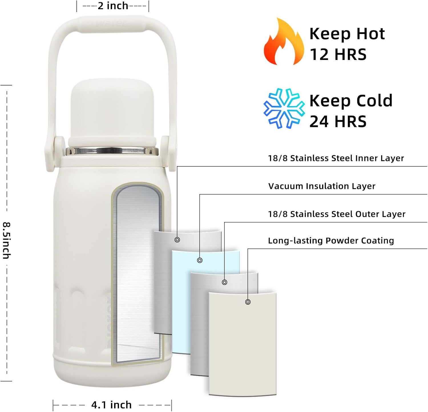 - Stainless Steel Water Bottles: Made of premium 18/8 food grade metal, durable and resistant to corrosion, adopt double walled vacuum insulation design keeps your beverages hot 12 hours or cold 24 hours