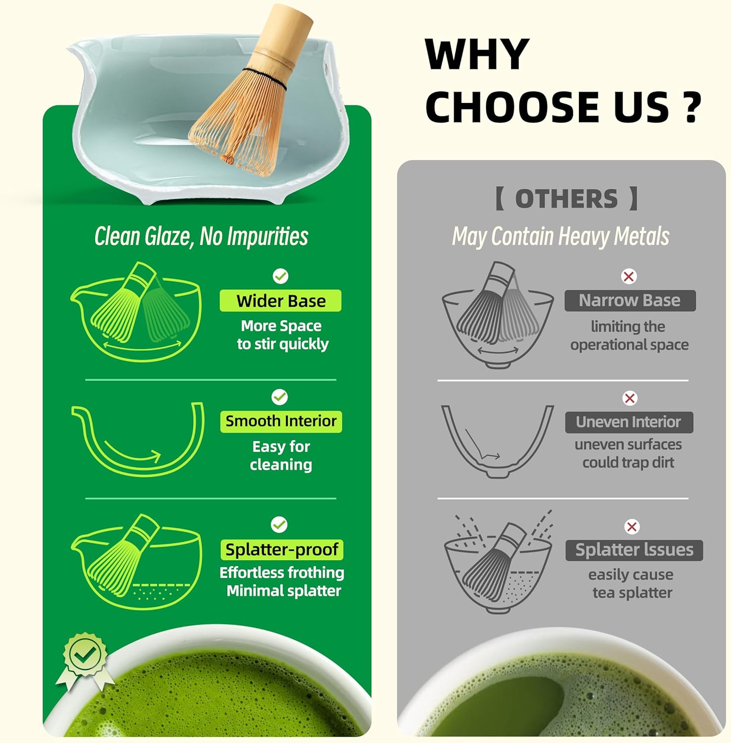 - HIGH SAFETY & QUALITY: Our Handcraft Matcha Whisk, About 100 Fine Tines(百本立),100% Crafted From High Quality Bamboo With A Vegetable Oil Finish To Enhance Its Durability. Additionally, Our Ceramic Bowl Has Lead-free And Mercury-free Test Reports.food-grade And Eco-friendly