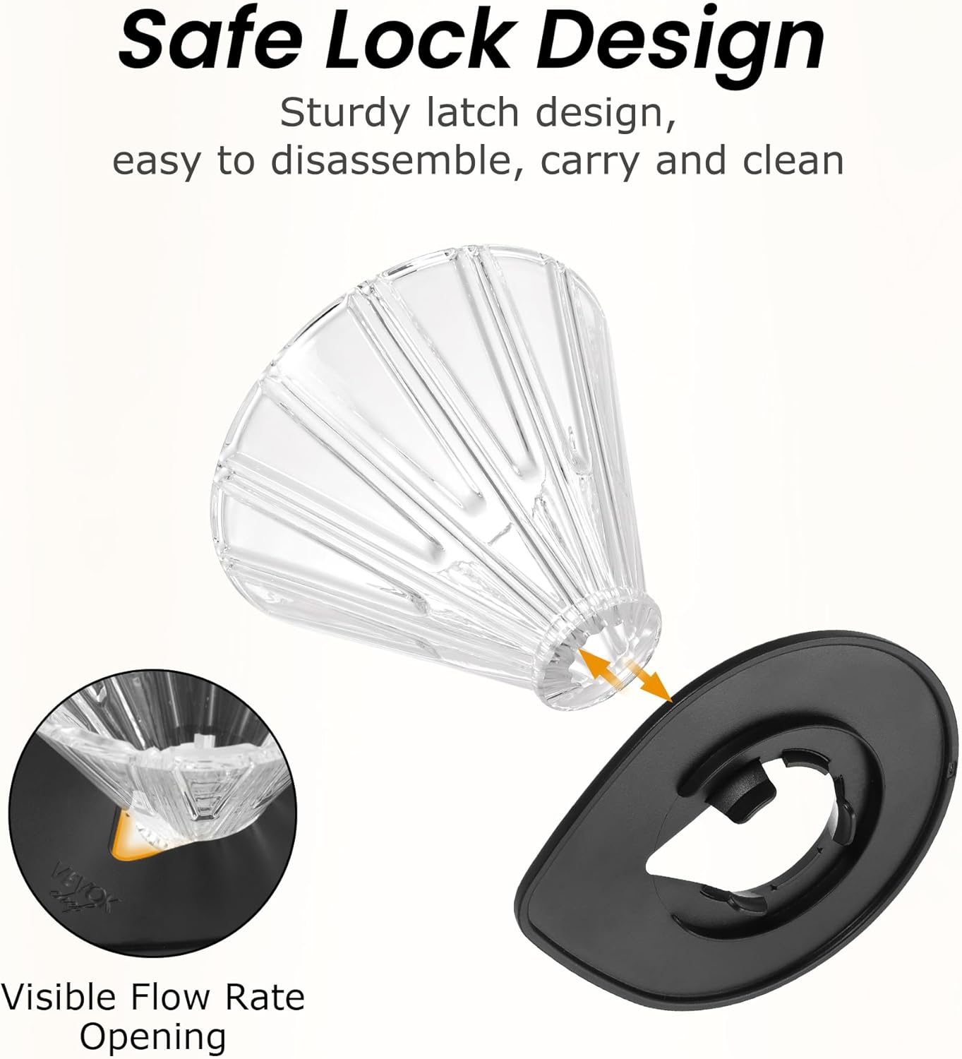 - Balanced Extraction: The Vevok Chef coffee dripper features a filtering design with ridges that guide water evenly through the coffee grounds for uniform and efficient extraction. Its V-shaped ribs on the inner wall and elevated ridges increase resistance to liquid filtration, reducing insufficient extraction, while the lower parts allow air flow and liquid to drip, preventing excessive extraction.