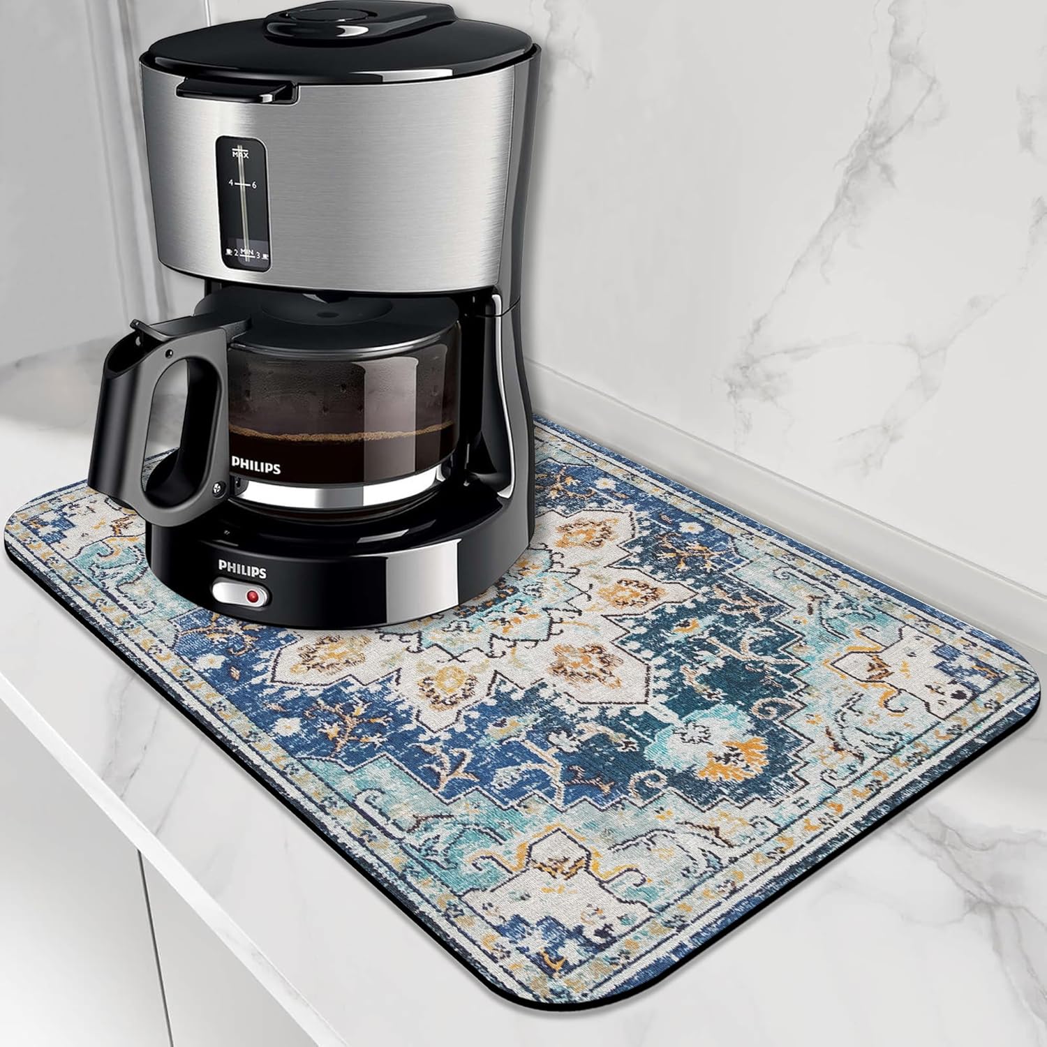 - 【Wide Application】It is not just a coffee bar mat, but also a fast drying kitchen drying mat, suitable for kitchen countertops, coffee bars, dish drain racks, perfect for air drying dishes, glasses, silverware, pots, pans. It can also be used as a pet feeding mat, door mat, bar mat and bathroom drying mat.