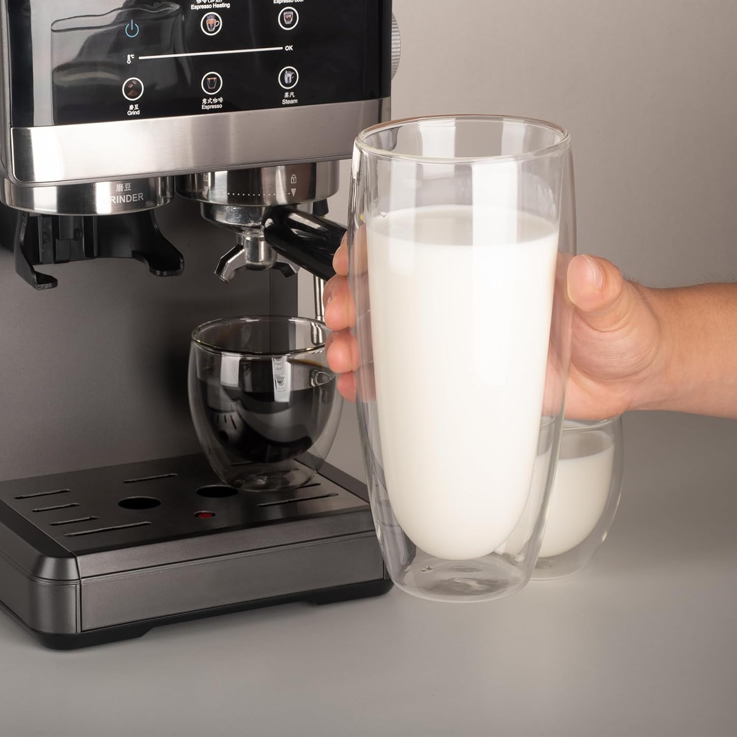 - Perfect Size for Any Beverages - Glass coffee cups for hot beverages that keep your latte,cappuccino or espresso,tea hot while your hand stays cool.