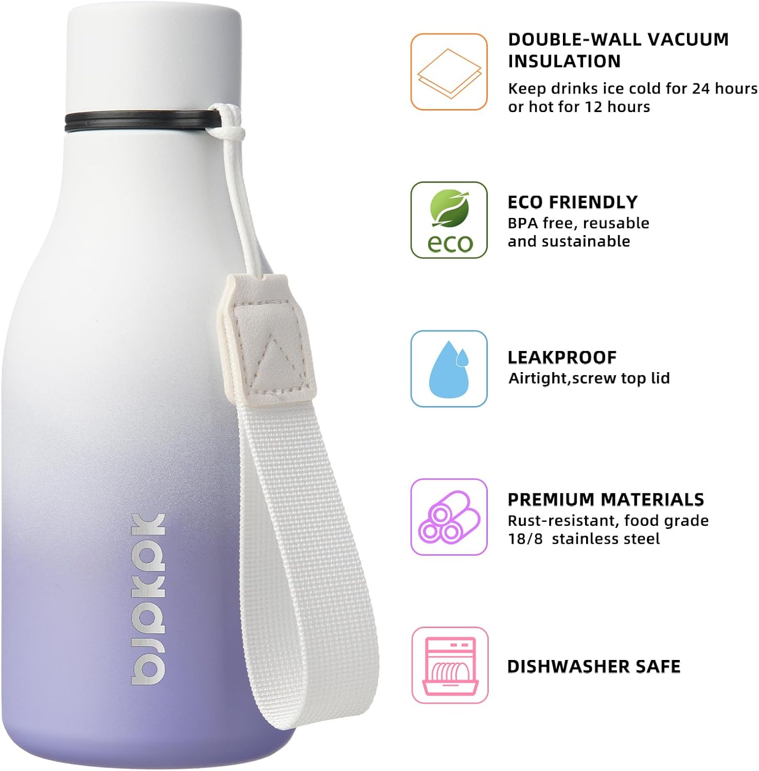 BJPKPK Insulated Water Bottles, 12oz Stainless Steel Metal Water Bottle with Strap, BPA Free Leak Proof Thermos, Mugs, Flasks, Reusable Water Bottle for Sports & Travel, Lilac Elegance