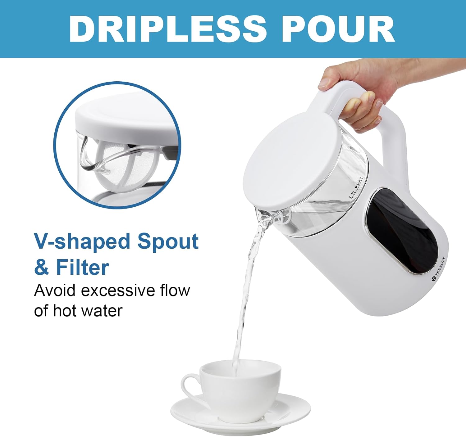 - 【1500W Fast Boiling Power】Boil up to 1.7 liters of water in minutes with the powerful 1500W electric kettle, perfect for busy mornings and quick tea or coffee preparation. Save time and enjoy efficiency with Tesslux.