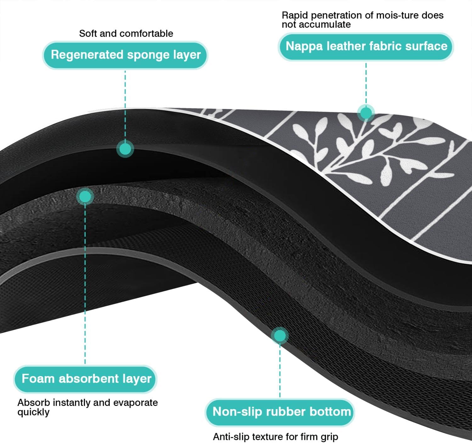 - RUBBER BACKING: The natural rubber bottom of the dish drying mat pad has a good anti-slip effect. Put the dish on the rug and the anti-slip bottom will be absorbed on the table to prevent it from moving. The waterproof bottom can prevent spilled liquid from damaging the tabletop and keep the kitchen countertop clean for a long time.