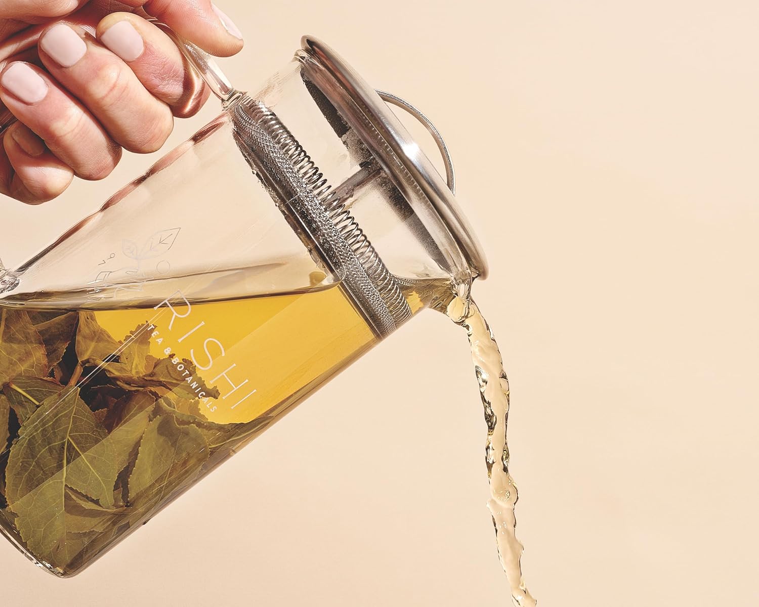 Rishi Tea Simple Brew Teapot - For 20oz Loose Tea Preparation, Built-in Strainer, Everyday Teaware, Easy to Clean, Borosilicate Glass, Enjoy Hot or Iced - 600ml