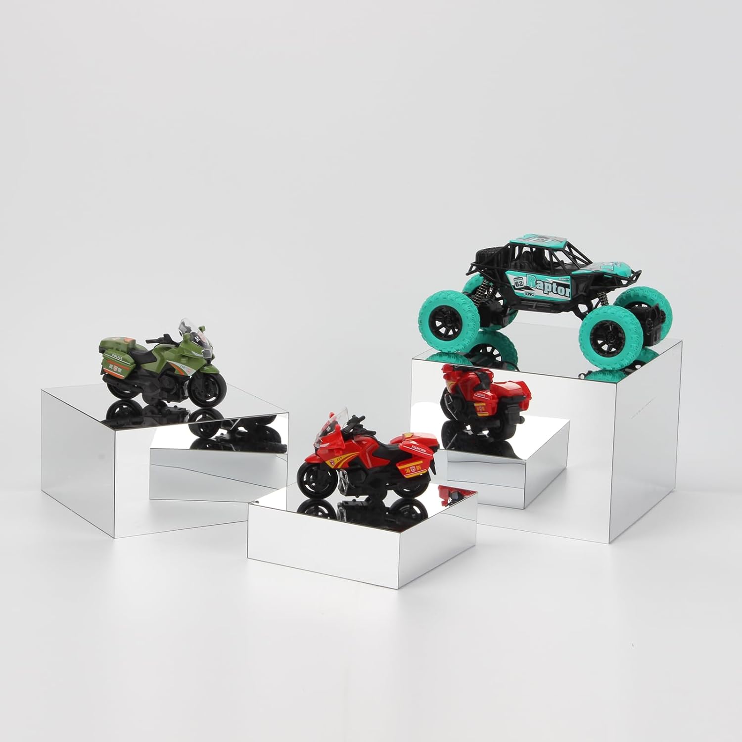 - Sturdy Mirror Finish Display Pedestal: These reflection risers can be displayed in multiple directions according to your needs. Each display box has 5 sides and adopts hollow bottom design to combine, stacked, nested, or display your desktop items and food