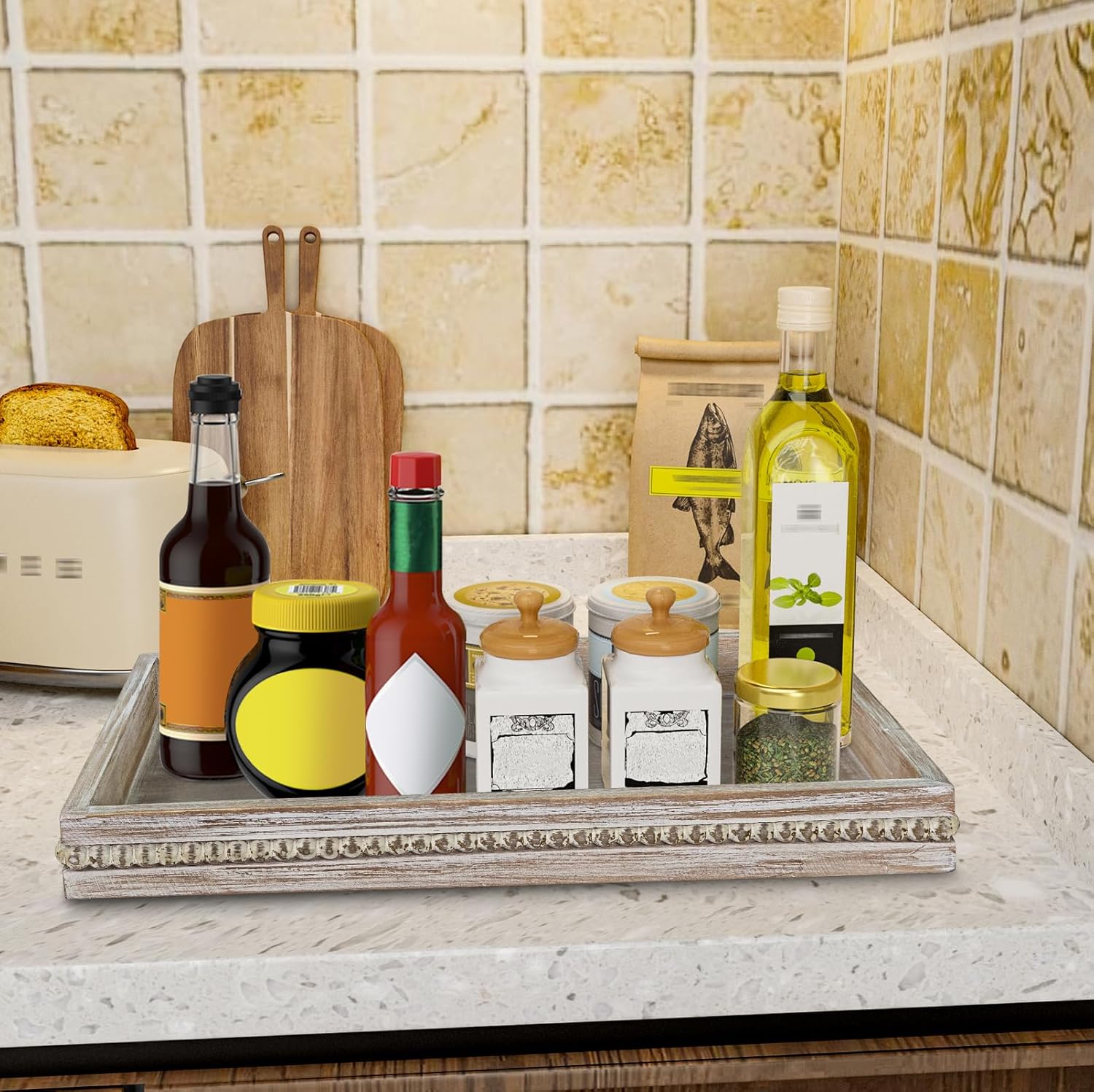 - WIDE USE: The decorative style of this rectangular tray is suitable for most usage scenarios, suitable for living room, coffee table, dining room, farmhouse kitchen counter and more. You can place some items or food on it, use it as a candle tray, coffee table tray, cocktail table tray, perfume tray, bathroom tray, vanity tray.
