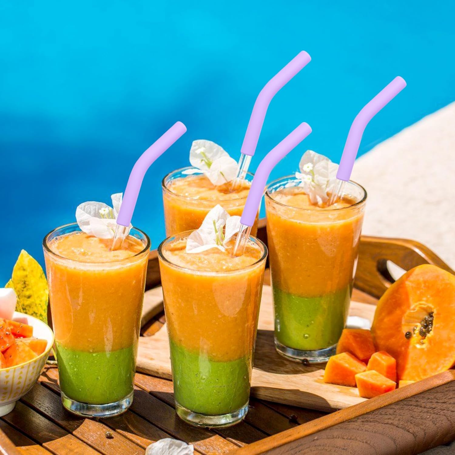 6Pcs Metal Straw Silicone Tips 5/16 IN Wide(8mm Outer Diameter) Food Grade Rubber Straw Covers Flex Elbow Straw Replacement Tip for Stainless Steel Metal Straws, light-purple