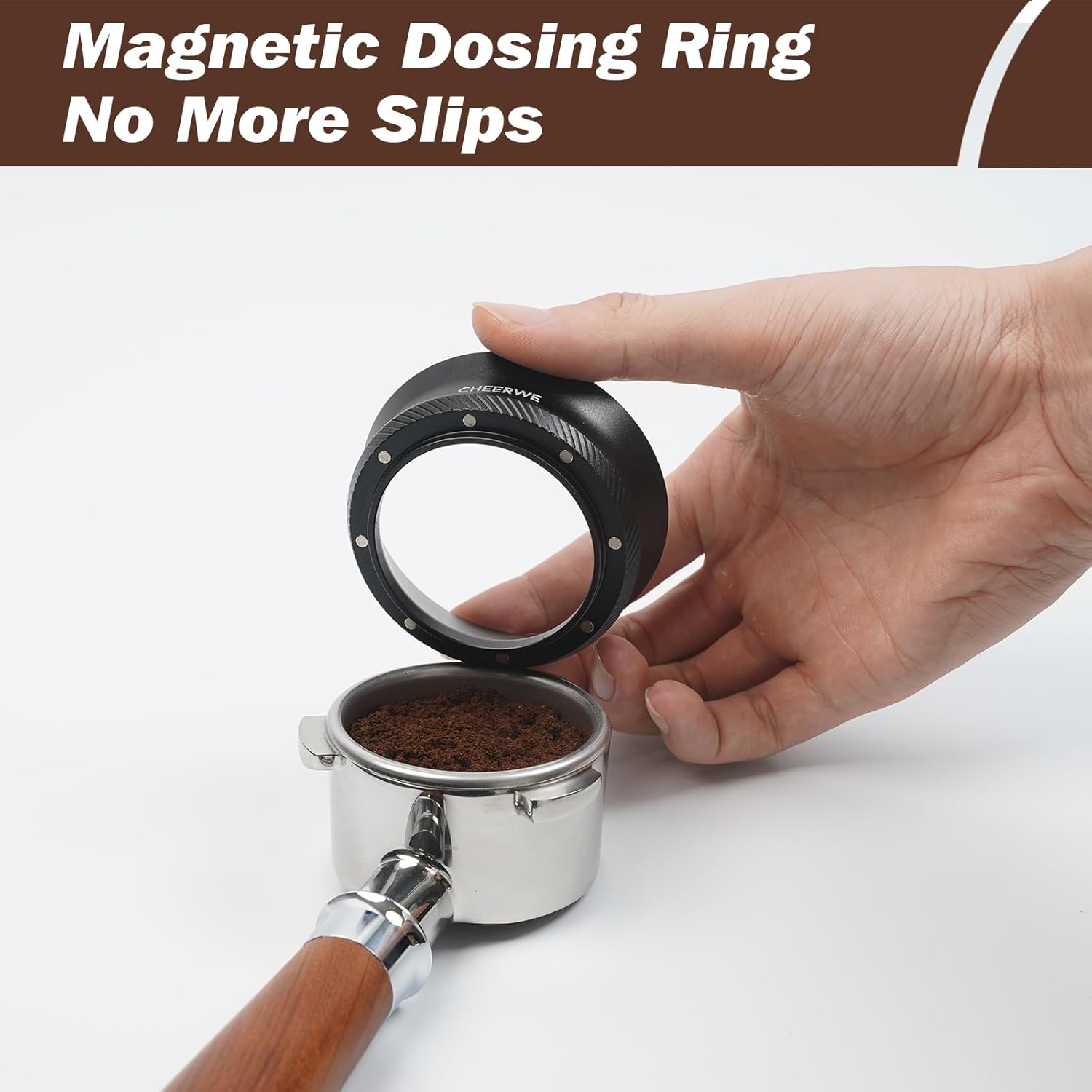 - 【Easy to Use】8 neodymium magnets are distributed at the bottom of the dosing funnel, which can be firmly attached to the portafilter. And it's also easy to remove after dosing.