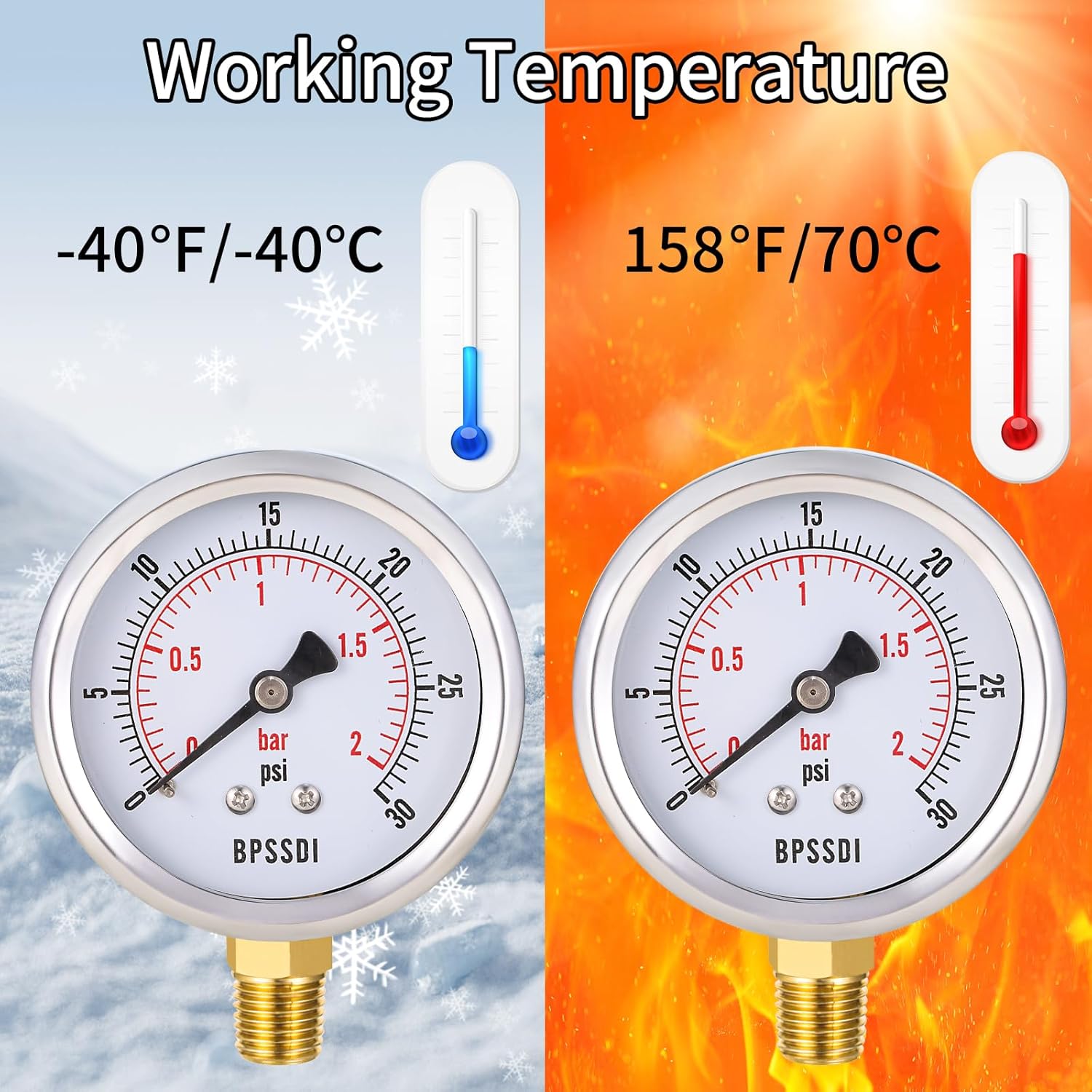 - Weather and Temperature Resistant - The pressure gauge can be used in environments from -40°C to 70°C in a variety of climates.