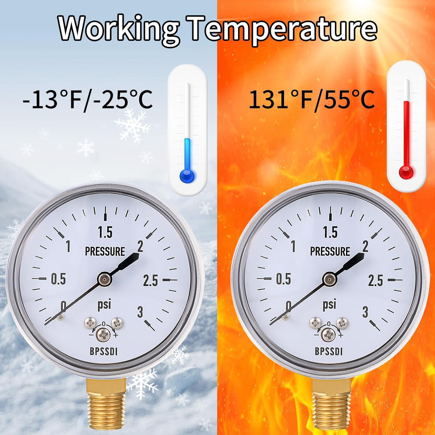 - Available all Year Round- Water pressure gauge for home has an operating temperature range of -25 to 55°C,maintaining performance in a variety of conditions.