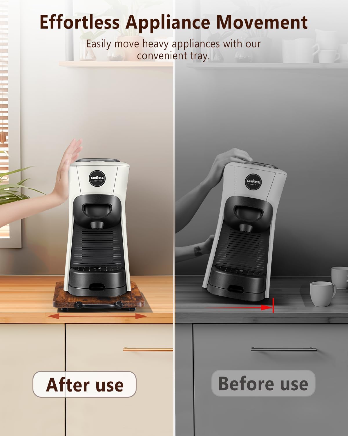 - Long-lasting & Sturdy: Our Appliance Tray supports up to 40 lb; it’s a sliding coffee tray for countertop that blends with any decor; a durable coffee slider for countertop, combining strength and style for your kitchen or dining area