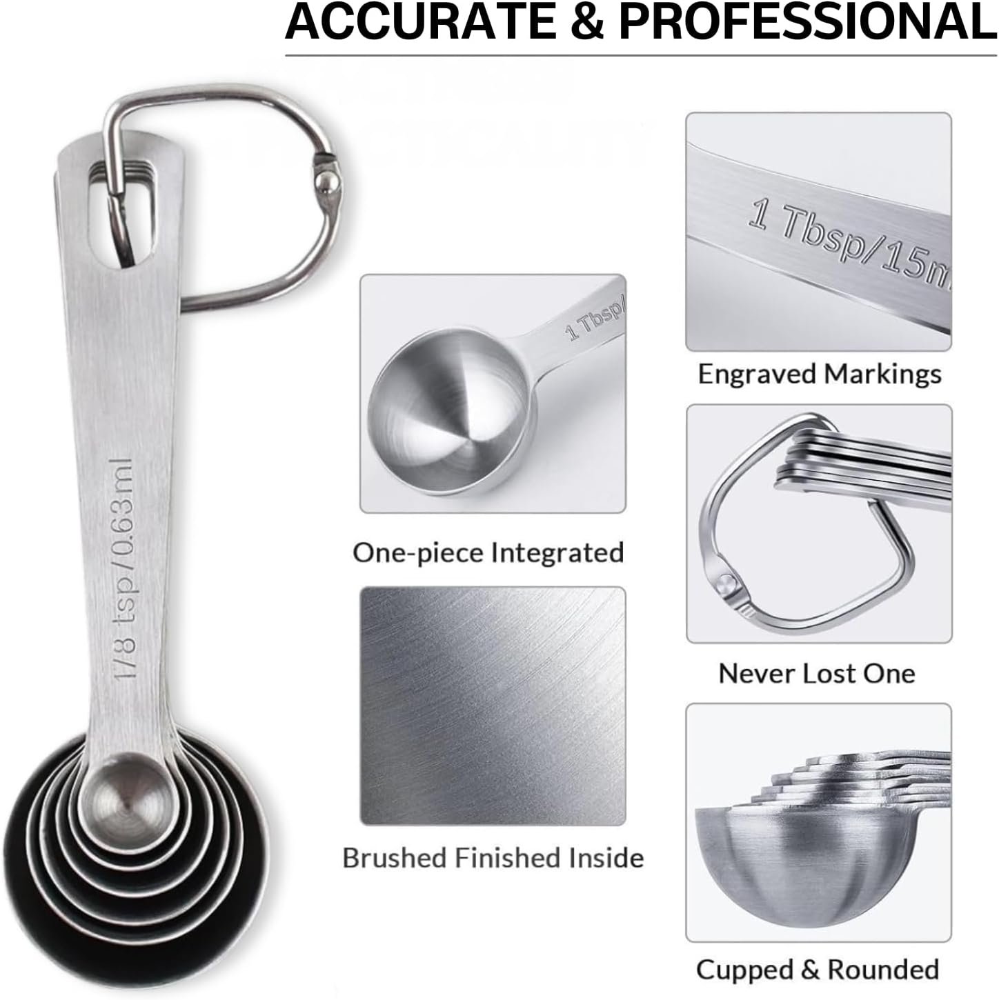 - Thoughtful Design and Versatility: Innovative spoon head shapes allow easy access to small containers, while engraved measurements ensure precise ingredient addition for perfect dishes every time