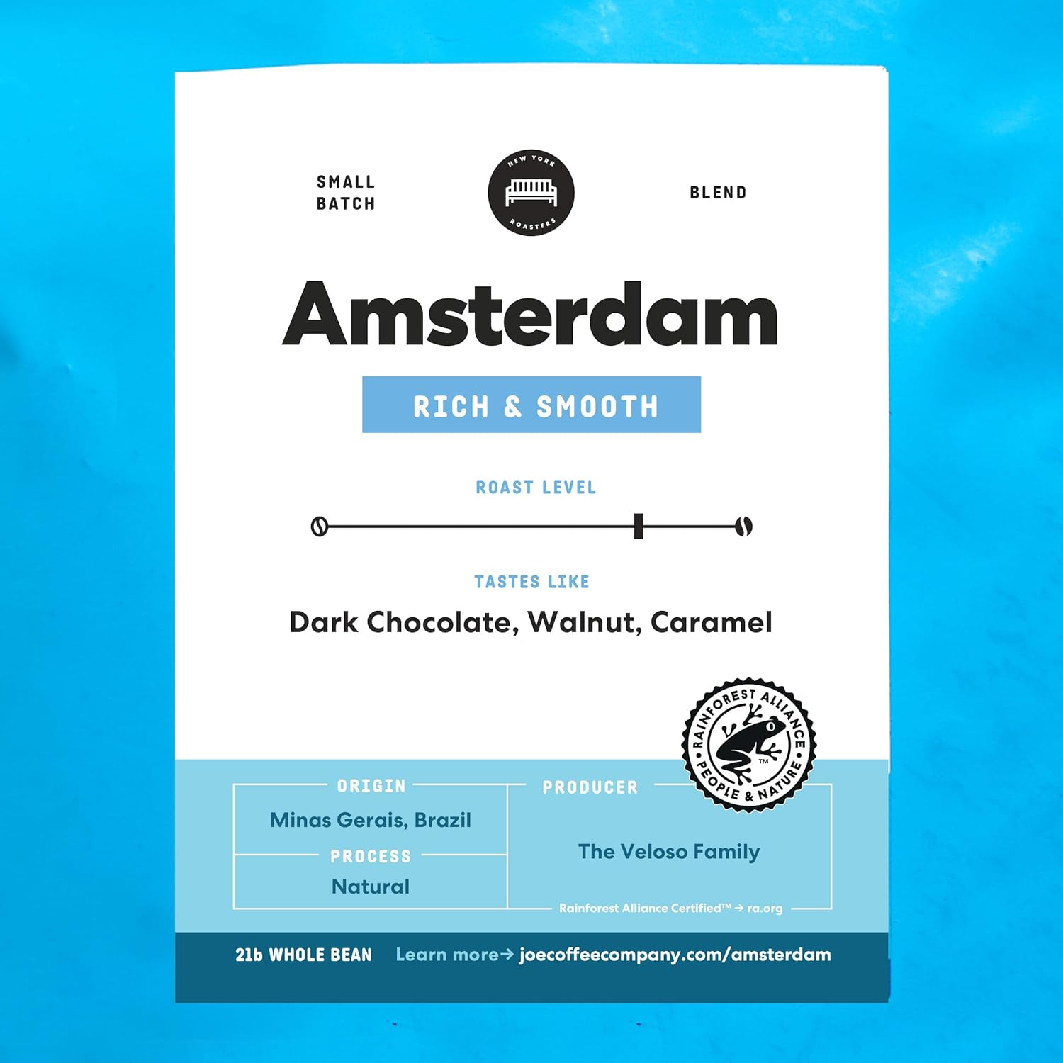 Joe Coffee Company - The Amsterdam Whole Bean Specialty Coffee, 12 oz Bag (Pack of 6) | NYC Roaster, Rainforest Alliance Certified, Kosher, Climate-Friendly