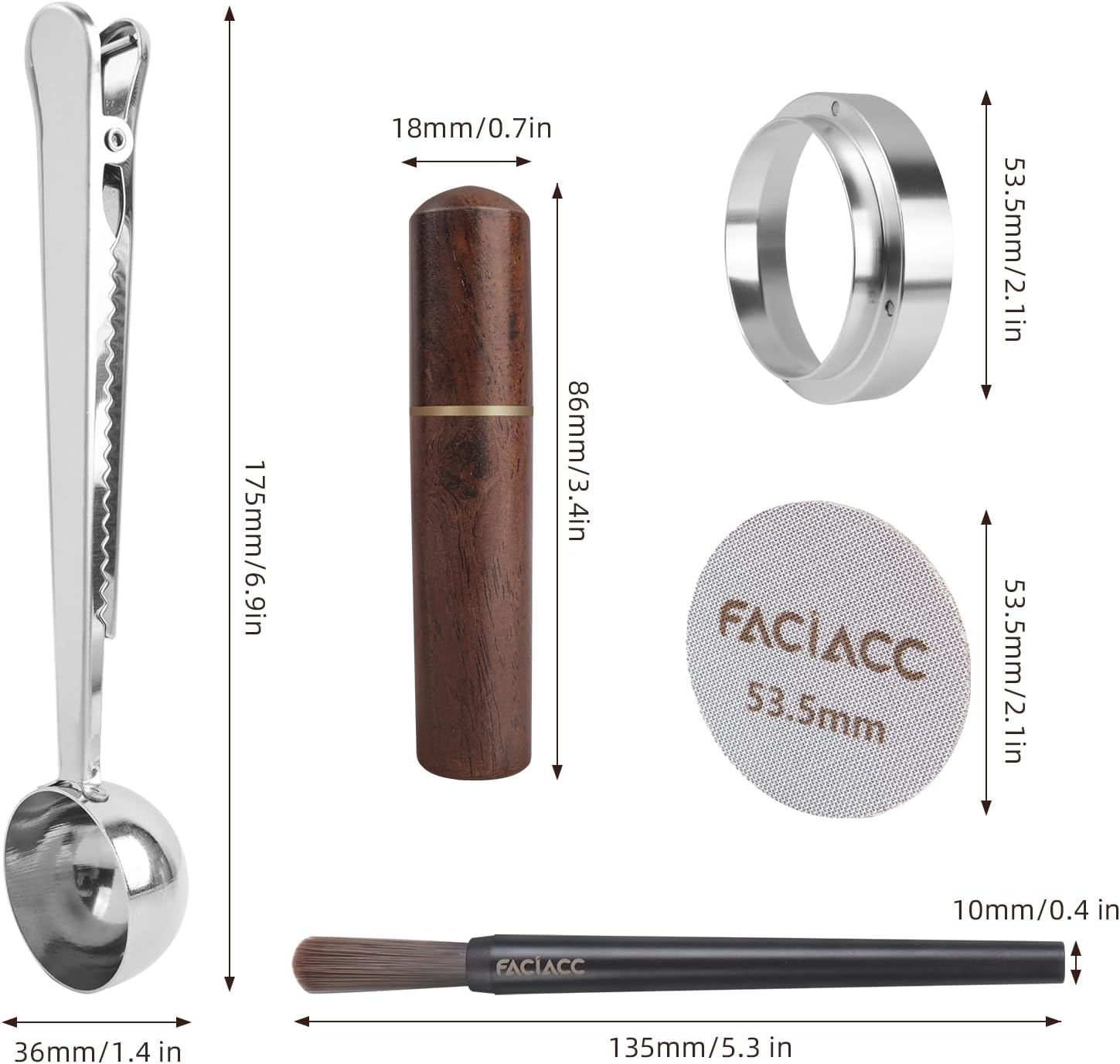 - 【Complete Espresso Tool Set】Elevate your espresso-making experience with this espresso tool set. It includes five essential components - the espresso wdt tool, espresso dosing funnel, espresso puck screen, 2 in 1 coffee bag clip & coffee spoon, and Coffee cleaning brush - to simplify, enhance, and perfect your brewing process.