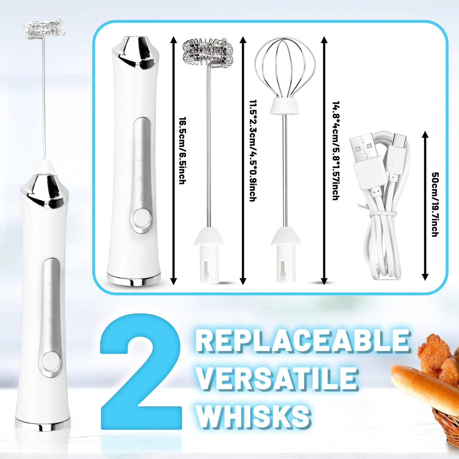 - 【Great for Coffee Lover】: This milk foam maker is lightweight and has ergonomically designed soft touch handle. The frother for milk and coffee is so handy and useful that can for your friends and family too as gift. (Package come with 1 milk frother, 1 extra egg whisk head, 1 USB-C cable and 1 instruction).