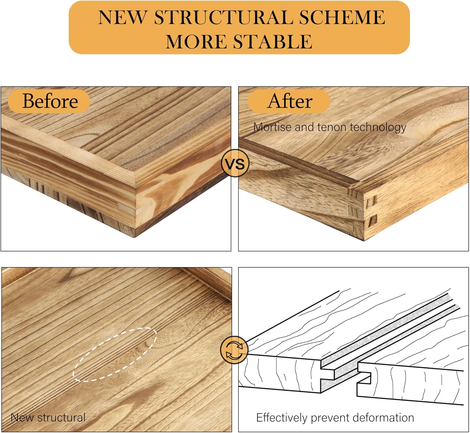 - 🌷 HIGH QUALITY - Our extra large rustic wooden serving tray is made of sustainably sourced solid hardwood material and finished with matte transparent paint, make the wood tray easier to maintain and keep clean