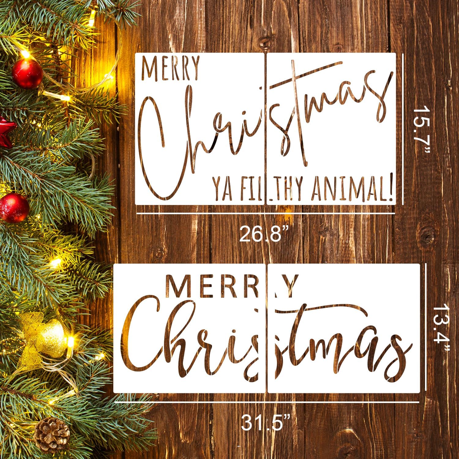 - Great for Doormat Decor:Easily add a seasonal accent to your home doormat with these Christmas stencils for painting!Patterns includes Merry Christmas and ya filthy animal.You can paint on a doormat,large wood sign,wall and window.