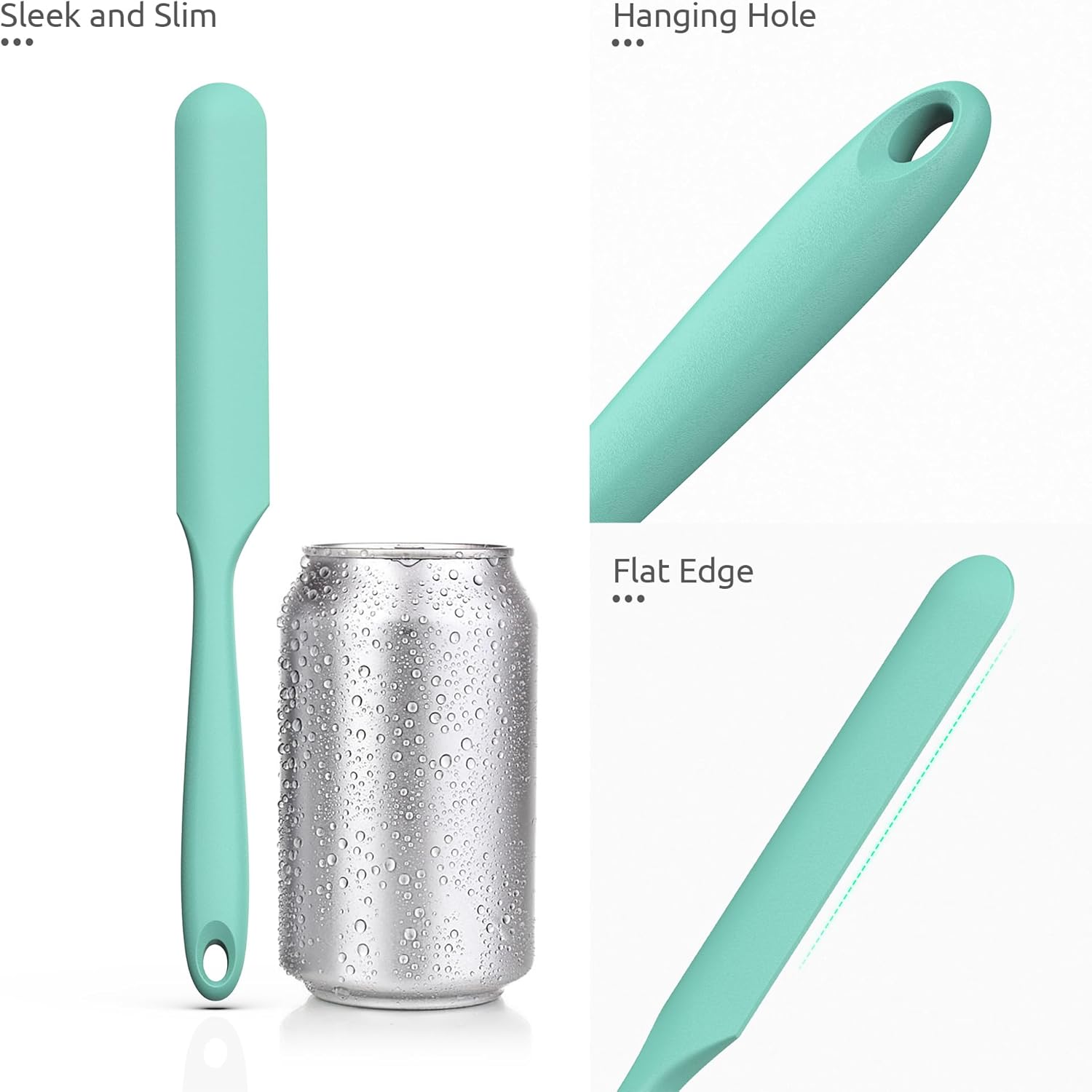 U-Taste Skinny Silicone Jar Spatula: 600ºF Heat-Resistant Food-Grade 10in Long Narrow Sourdough Stirring Stick, Seamless Flexible Peanut Butter Spreader for Scraping Icing Bread Cream, Jam (Aqua Sky)
