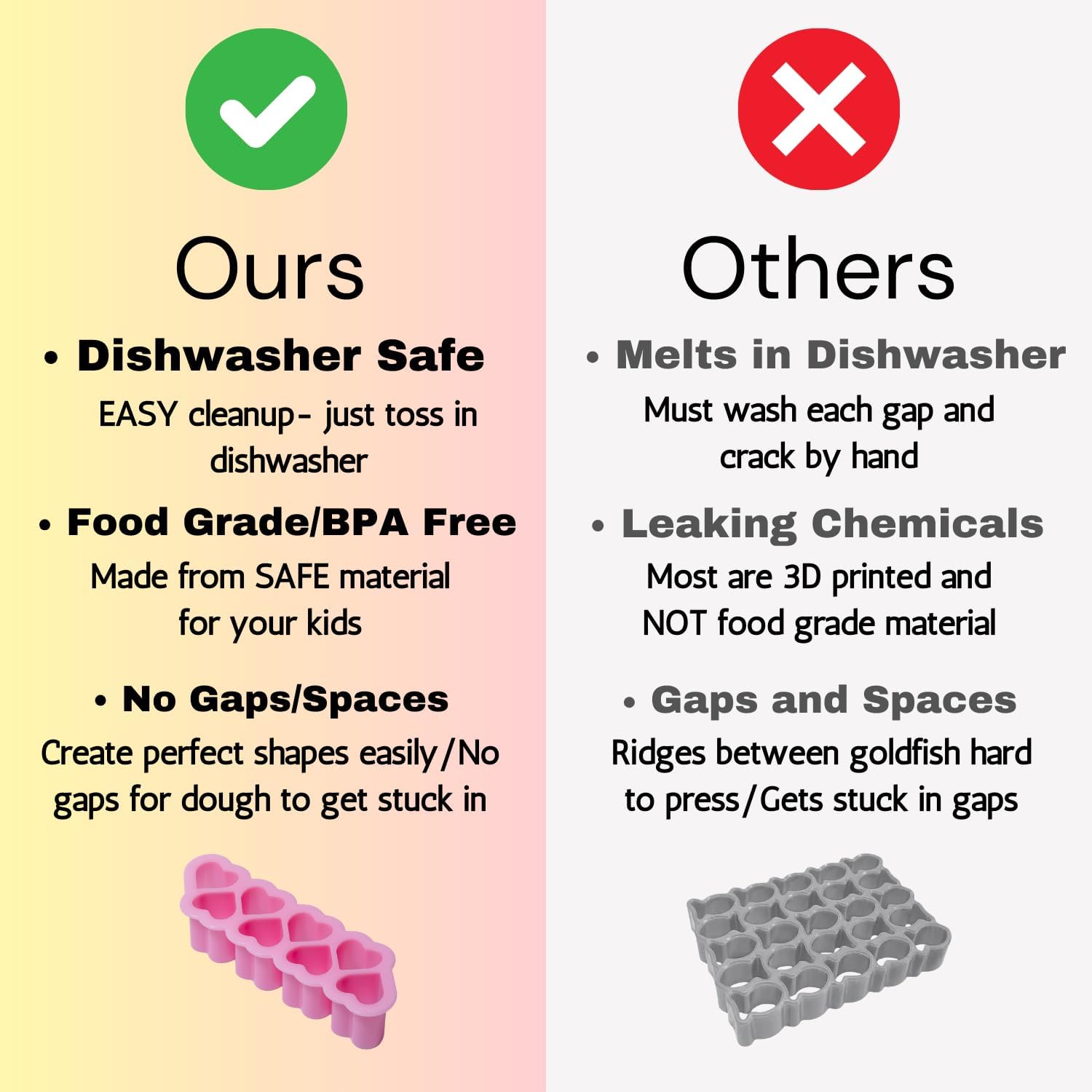 - 100% Dishwasher Safe – Unlike 3D-printed cutters that require handwashing, ours are completely dishwasher-safe for effortless cleanup. No scrubbing, no stress!