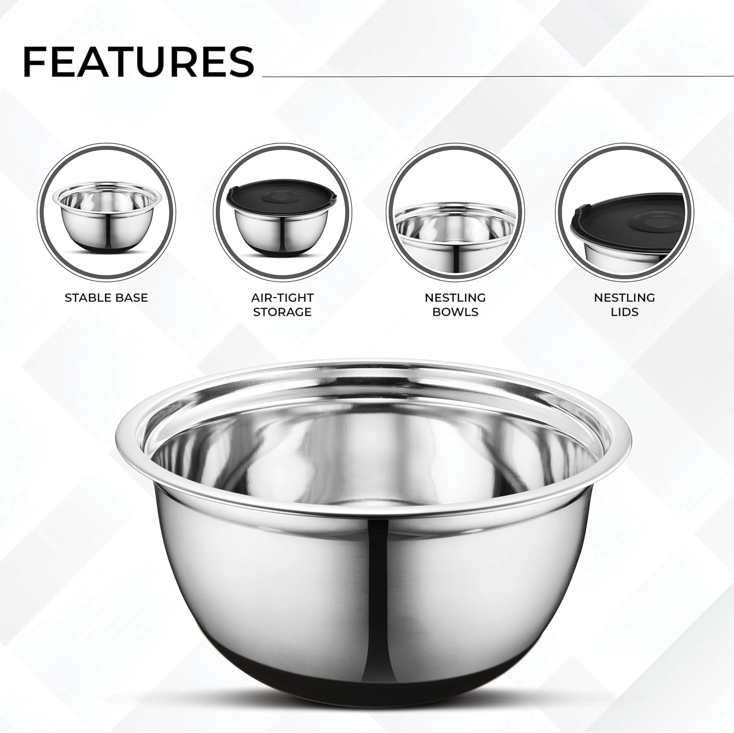 - ✅ Stainless Steel Mixing Bowls with Nestable Design for Easy Storage