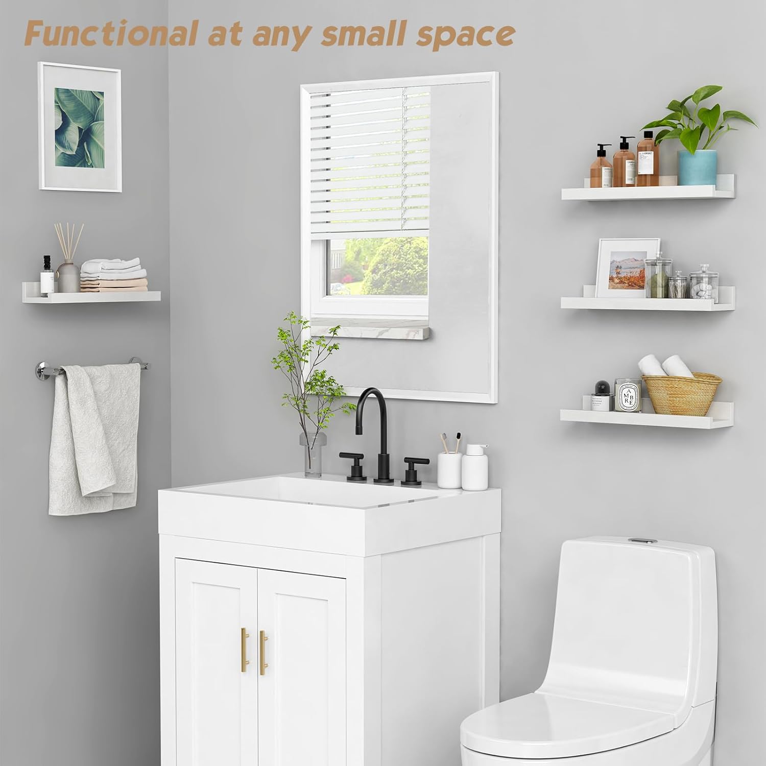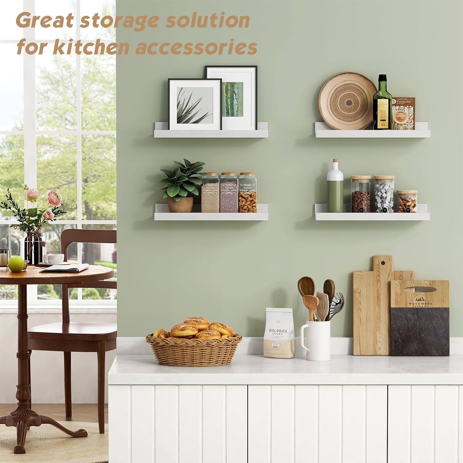 - 【Perfect solution for your walls】The white floating shelves with lip is SAME SIZE as each other (W 16" x D 4.5" x H 2.2") and is such an easy way to display photo frames without making lots of holes in your walls. The picture ledge shelf set of 4 are crafted from Paulownia wood which are lightweight yet proportionately strong, sustainable real wood. They come fully assembled and all mounting hardware is included in the package. Sturdy enough to hold up to 20 lbs weight with proper installation.