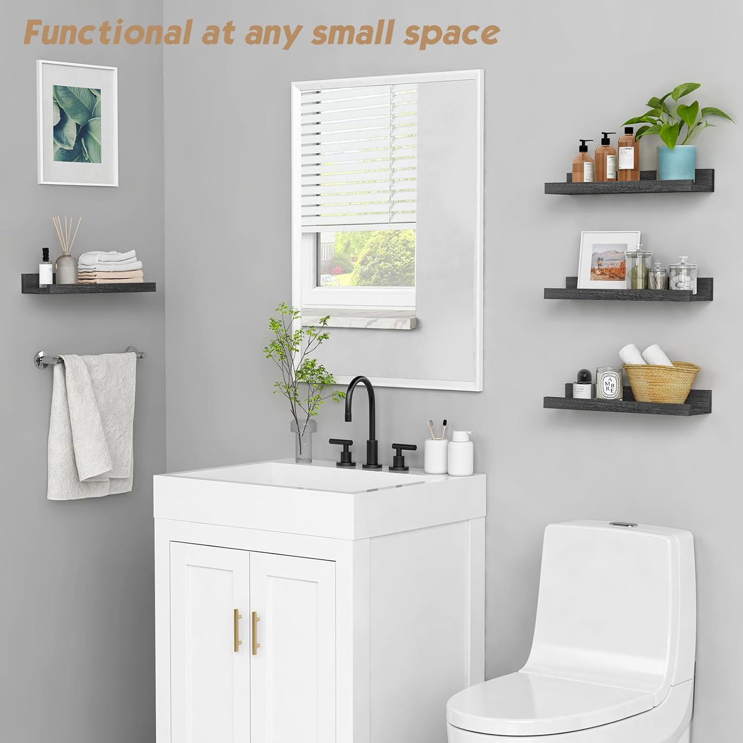 - 【Suitable for All Occasions】The sleek, simple design of wall mounted picture shelves allow them to match with nearly any aesthetic. The kids room wall bookshelf can help to declutter or free up counter space in your playroom to make places much tidier and neater - from using as a baby bookshelf in nursery to organizing wall decor, toiletries, essential oil in a bathroom.