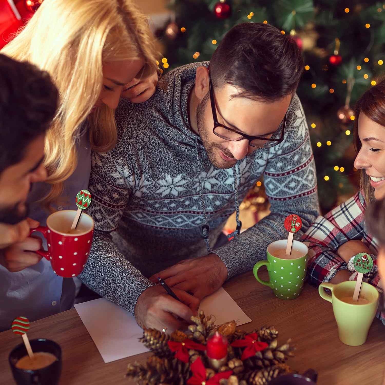 - Creative Pattern Design: these coffee stir sticks have different Christmas patterns printed on the round handles, the beautiful patterns can add a different kind of fun to your party and make your guests spend a memorable and enjoyable holiday