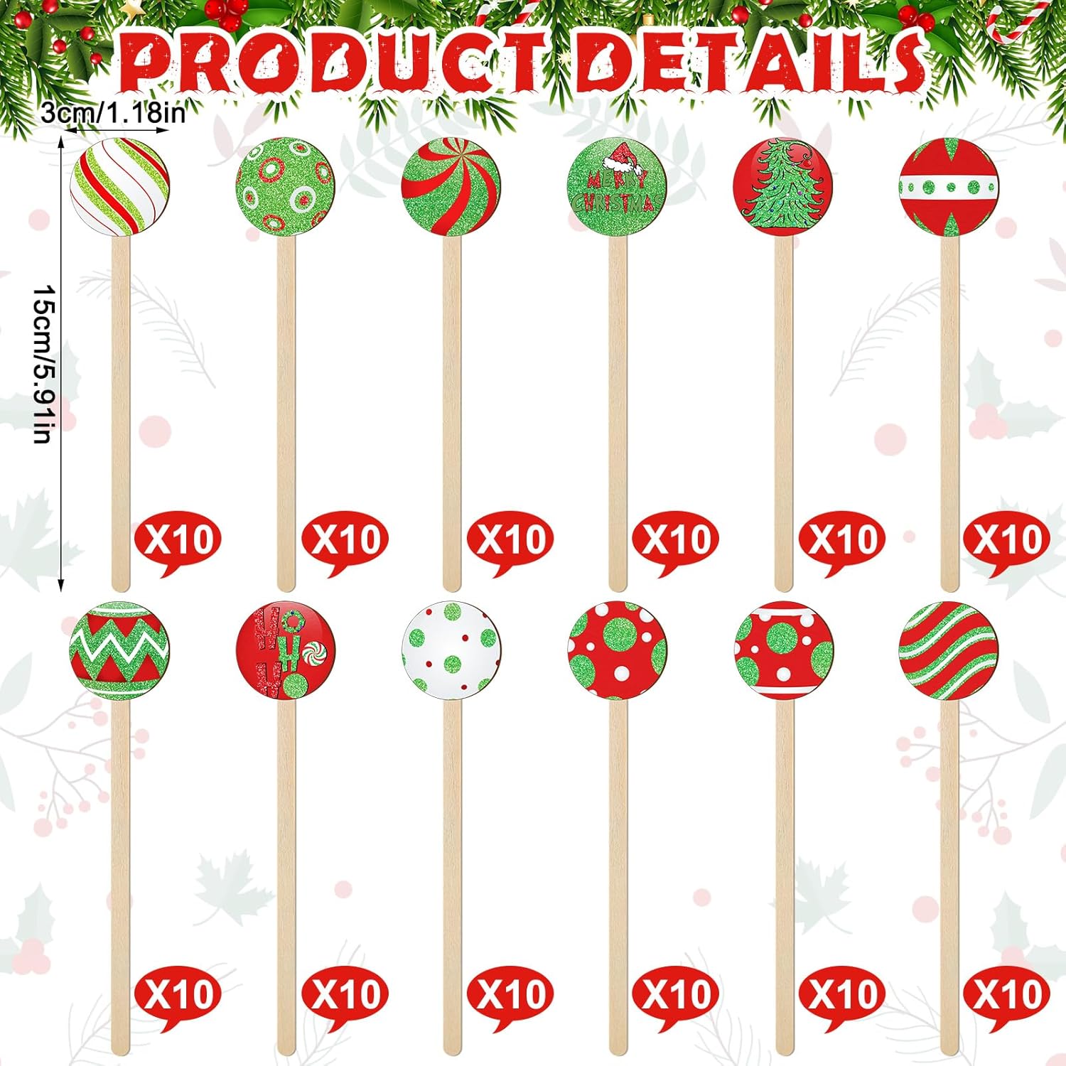 - Sufficient Quantity and Reasonable Size: package contains 120 pieces of Christmas cocktail stirrers, they have different styles, their size is approx. 6 inch/ 15 cm long, 1.2 inches in diameter, right size and sufficient number are ideal for your Christmas and daily use