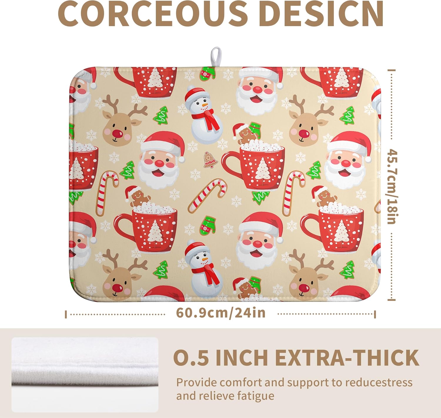 - [Multi-functional]: This Winter Snow dish drying mat can be placed under the dish rack to collect dripping water to keep the counter dry and clean, or you can place bottles, pots, plates, bowls, cups and other utensils directly on the mat. Snowflake Snowman Xmas dish drying mat can also be placed under the coffee machine to absorb spilled coffee.