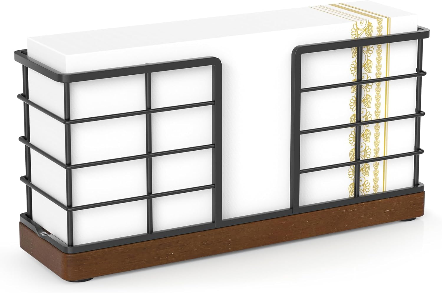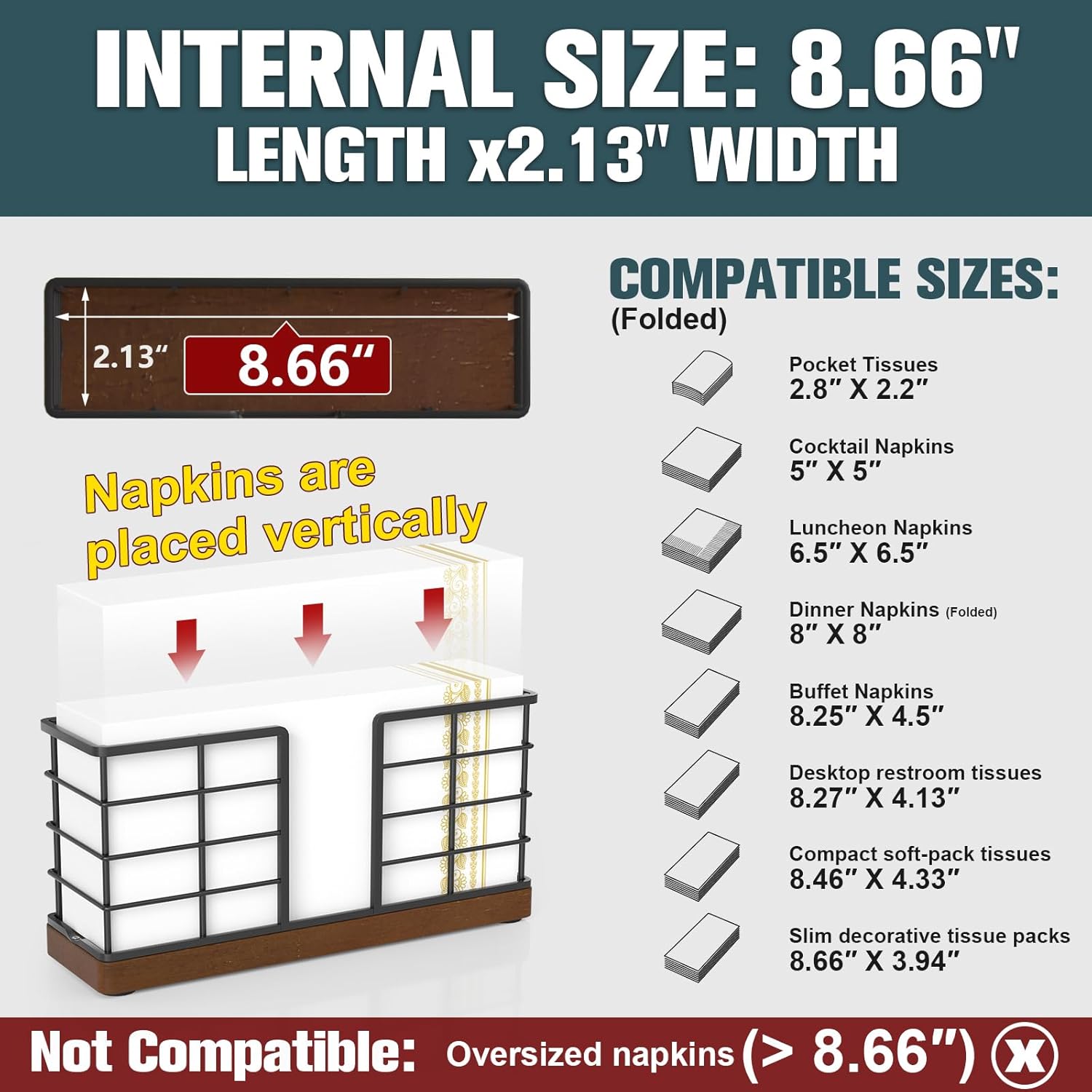 Wican Vertical Stance Bathroom Napkin Holder Takes Up Less Space for Small Guest Bathroom Oak and Iron Towel Tray for Powder Room Wooden Basket for Disposable Paper Hand Towels Black and Walnut