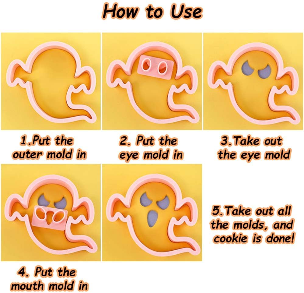 - 【Combination Design】Enhance your baking experience with our unique pastry biscuit cutter set. 2 kinds of ghost models, 8 unique eyes and 8 unique mouth designs, you can make 128 cookies with different expressions, fully satisfying your DIY needs