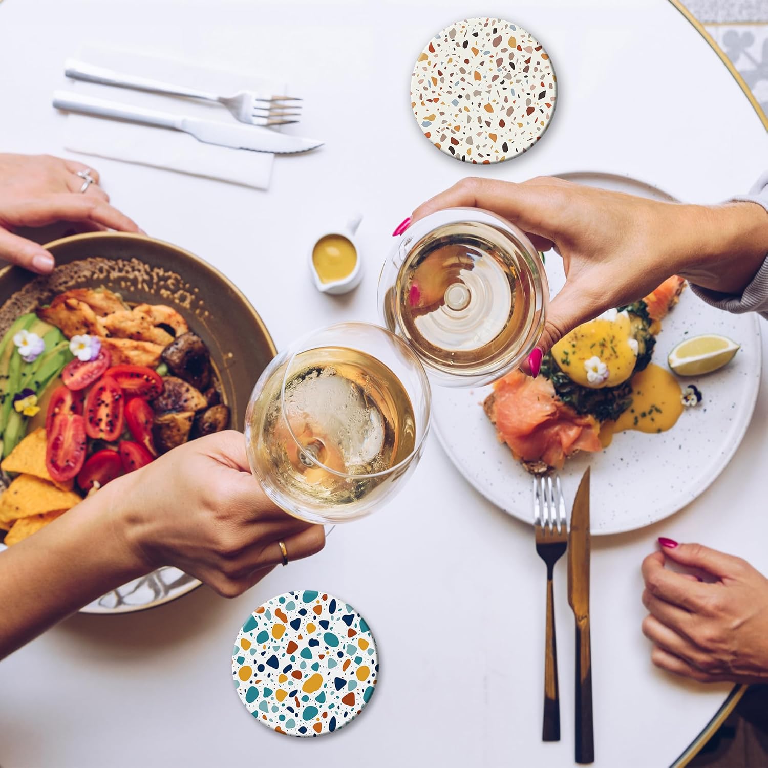 6 Pcs Coasters for Drinks with Holder, Terrazzo Marble Absorbent Ceramic Coasters with Cork Base,Cute Funny Table Drinks Coasters Tabletop Protection Mat,Table Home Decor,4 Inches