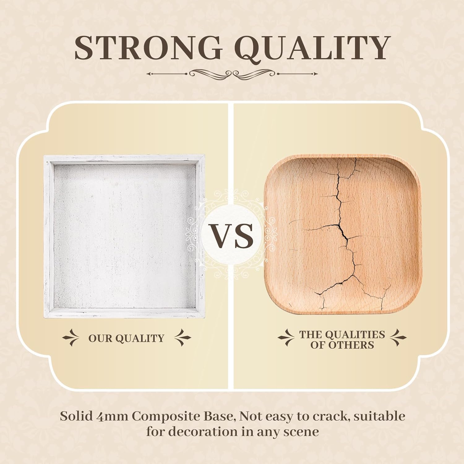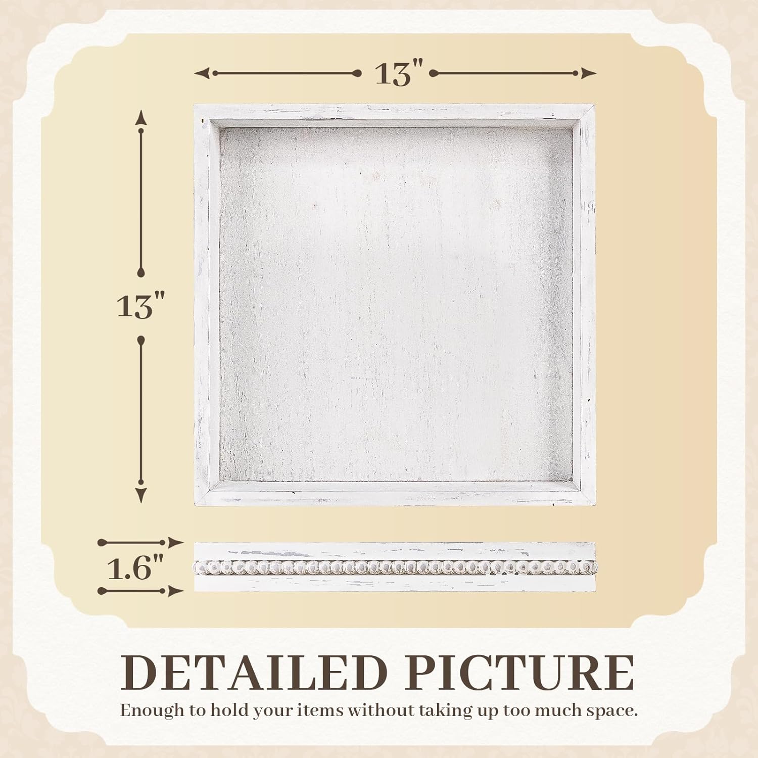 - [Carefully Designed]: He's not an oversized tray just larger than the regular siz, Each farmhouse decorative tray is handmade by skilled craftsmen. Designed to be 1” larger than the usual regular sized trays of 13" x 13" x 1.6" wooden tray is not only more practical but also beautiful to decorate, adding a unique and elegant touch to your home.