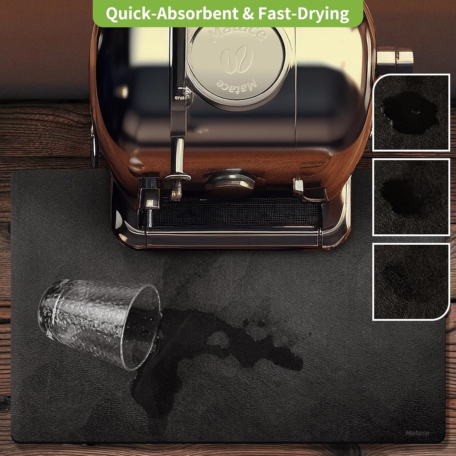 - 【Superior Stain Protection】 Crafted with an absorbent PU leather surface, the Matace Drying Mat quickly soaks up accidental spills and drips, keeping your kitchen counter clean and dry. Ideal for use as a coffee station mat or kitchen drying mat, it effectively protects your surfaces from everyday messes.