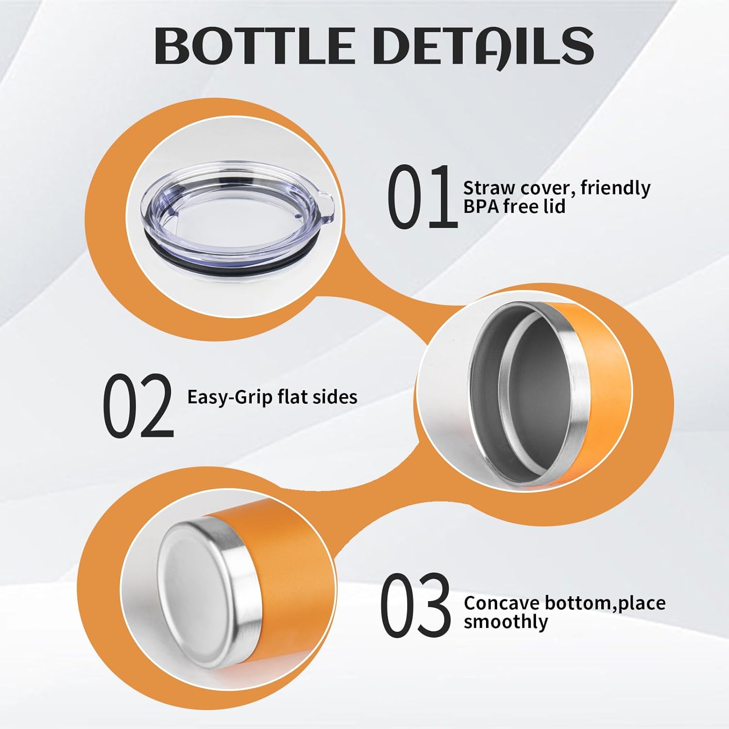 - BPA Free Lid: Stainless steel tumbler set with lid and an opening for drinking, be aware of how hot your coffee is before taking a sip. Under normal temperature, the insulated coffee cup keep your water hot for three hours and cold for nine hours