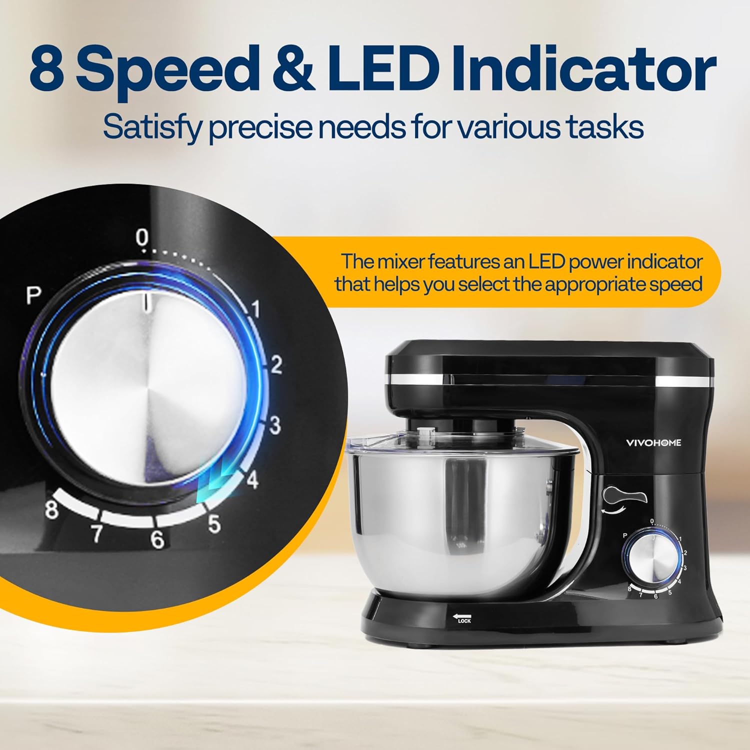 VIVOHOME 4.75 Quart Stand Mixer, 8 Speed Kitchen Electric Food Mixer, Household Stand Mixer for Baking, Cake, Bread with Beater, Dough Hook, Wire Whip and Egg Separator, Black