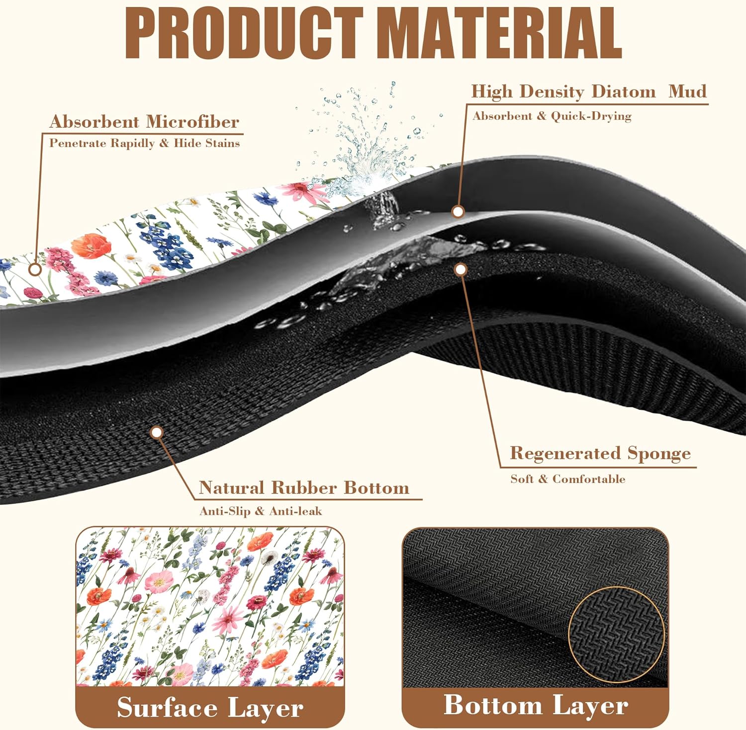 Watercolor Flowers Coffee Mat Absorbent Dish Drying Mat for Kitchen Counter Hide Stain Rubber Backed Coffee Bar Accessories Fit Under Espresso Machine Dish Rack 15.7 x 23.6 Inch