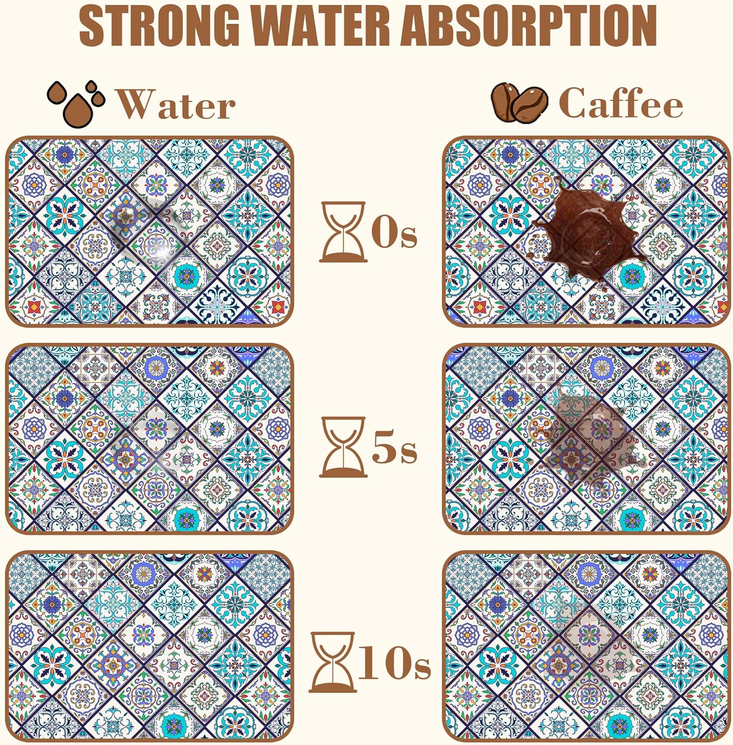 Colorful Tiles Dish Drying Mat for Kitchen Counter Hide Stain Absorbent Coffee Bar Mat Non-Slip Rubber Backed Drying Rack Pad Coffee Pot Espresso Machine Table Accessories 15.7 x 23.6 Inch