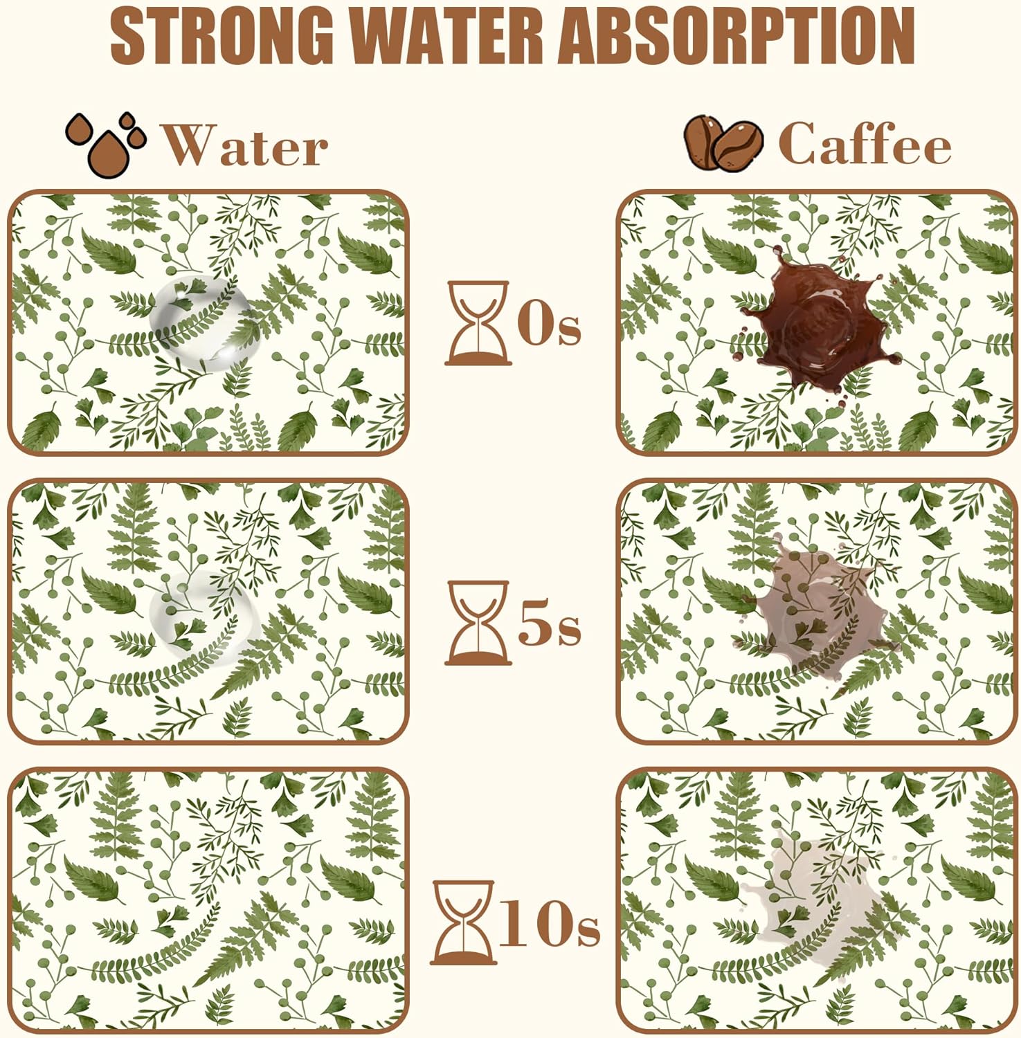 Green Leaf Coffee Mat Herb Dish Drying Mat for Kitchen Counter Hide Stain Rubber Backed Absorbent Coffee Bar Accessories Fit Under Espresso Machine, 15.7 x 23.6 Inch
