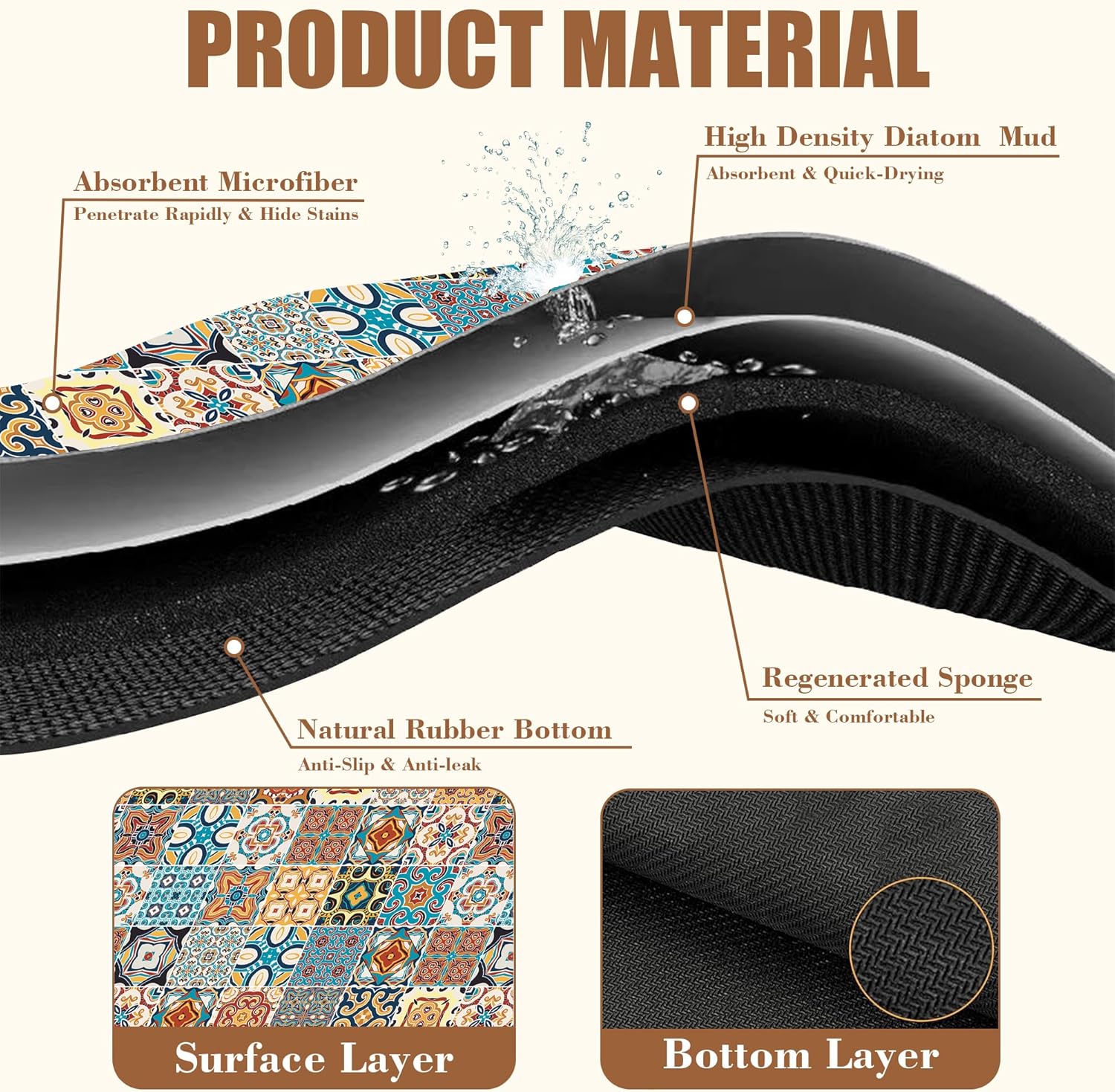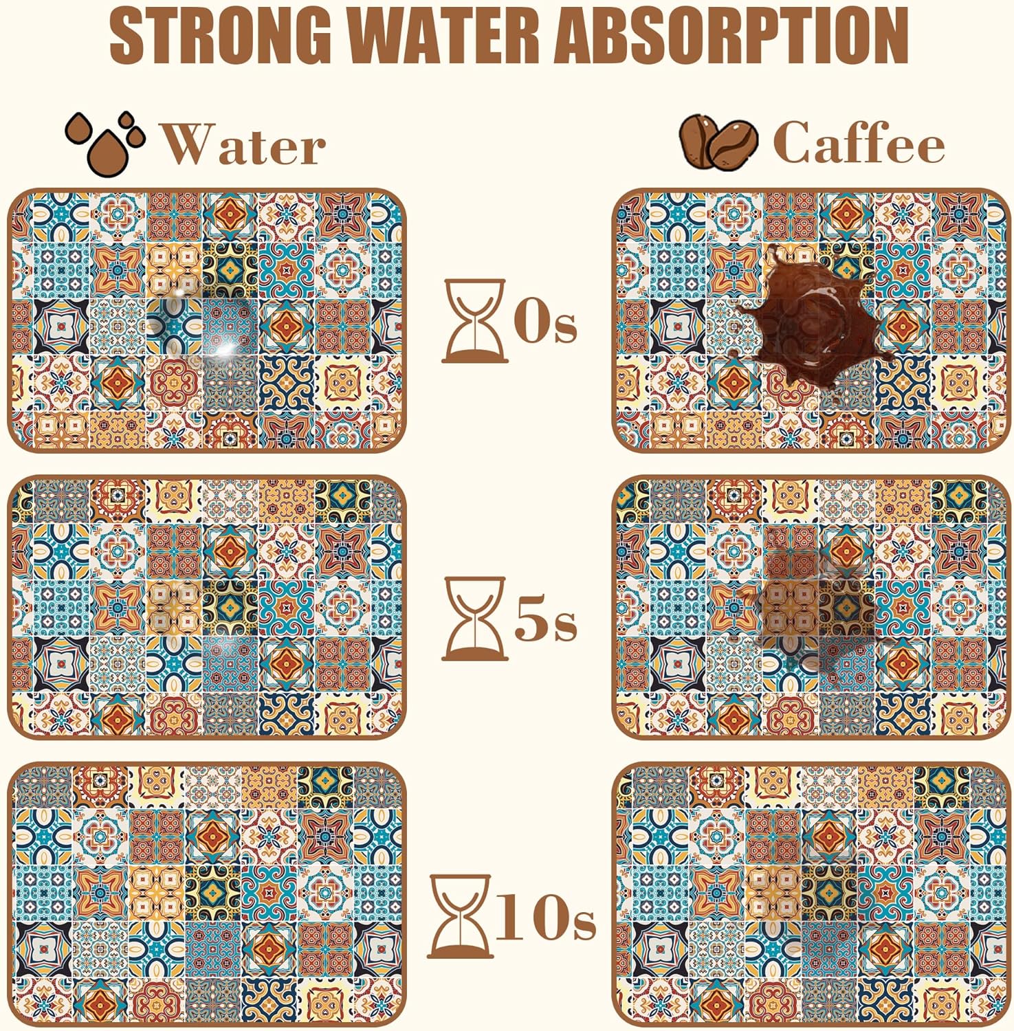 Dish Drying Mat Multicolor Portuguese Tiles Coffee Bar Mat for Countertop Absorbent Rubber Backed Hide Stain Dish Drainer Rack Pad Coffee Maker Espresso Machine Dining Room Decor 15.7 x 23.6 Inch