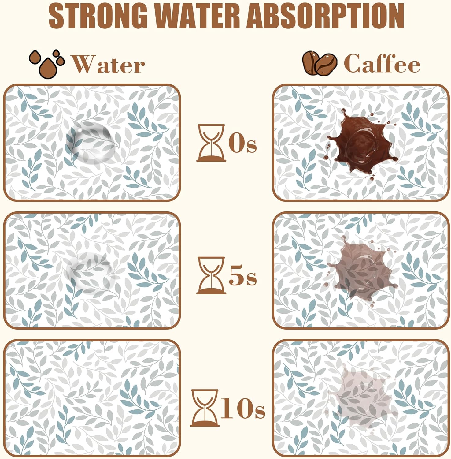 - 【Absorbent & Quick-Drying】The surface of this coffee mat is made of absorbent microfiber and the middle is made of composite sponge, which can absorb up to 4 times its weight in water and has a strong water absorption capacity. The high-density design makes it fast drying and can quickly absorb spilled liquids to keep your counter or desktop dry