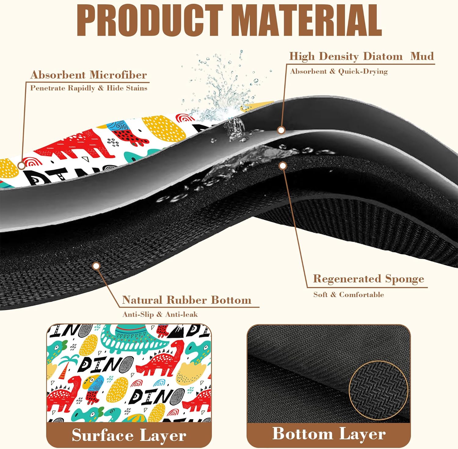 Dinosaur with Palms and Eggs Coffee Mat Absorbent Dish Drying Mat for Kitchen Counter Hide Stain Rubber Backed Coffee Bar Accessories Fit Under Coffee Maker Espresso Machine, 11.8 x 19.7 Inch