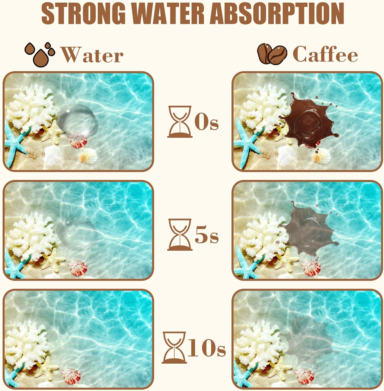 - 【Absorbent & Quick-Drying】The surface of this coffee mat is made of absorbent microfiber and the middle is made of composite sponge, which can absorb up to 4 times its weight in water and has a strong water absorption capacity. The high-density design makes it fast drying and can quickly absorb spilled liquids to keep your counter or desktop dry