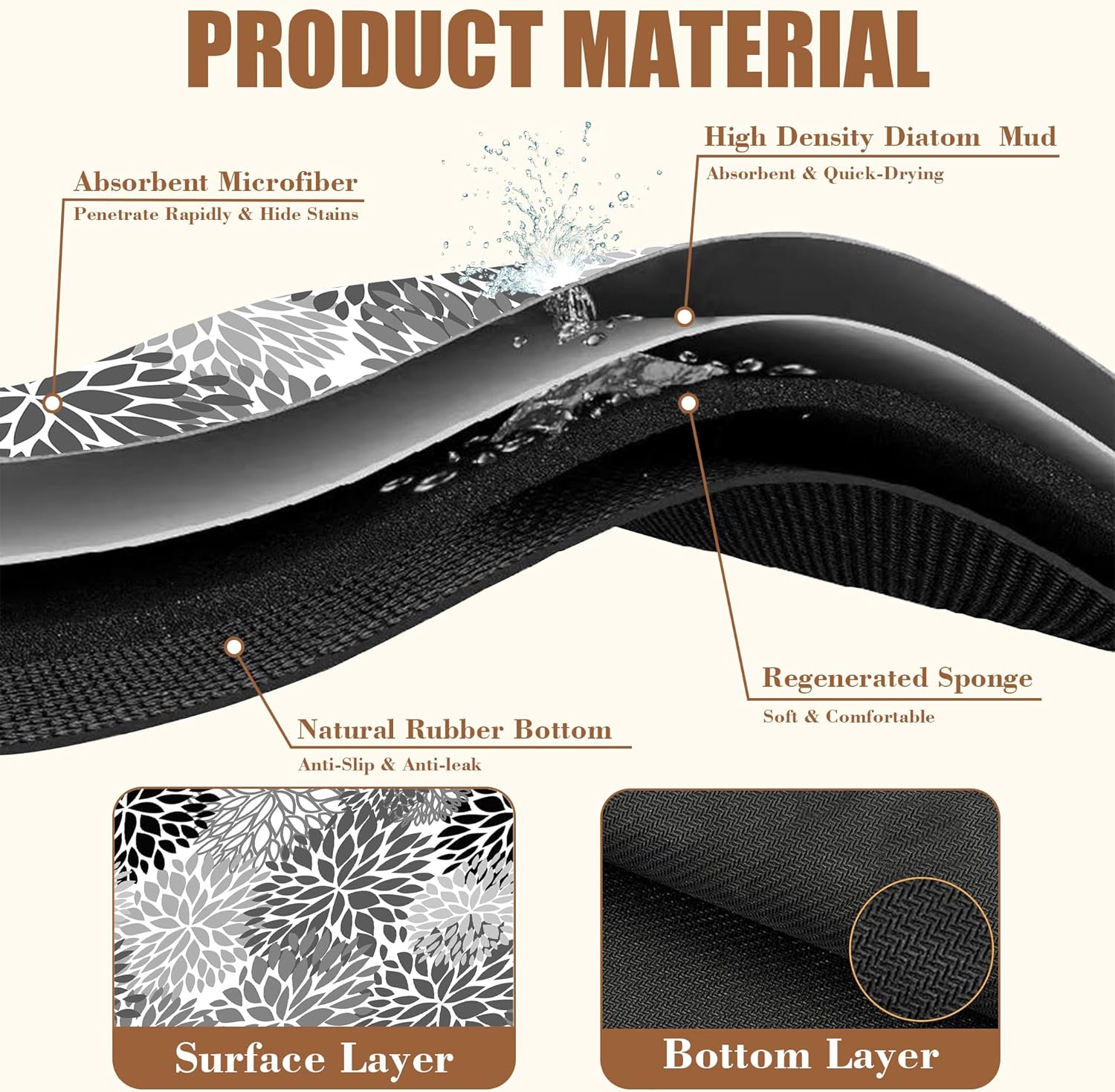 Dish Drying Mat Black and White Chrysanthemum Flower Coffee Bar Mat Absorbent Coffee Mat Rubber Backed Hide Stain Dish Drainer Rack Mat Coffee Maker Coffee Pot Dining Room Decoration 11.8 x 19.7 Inch