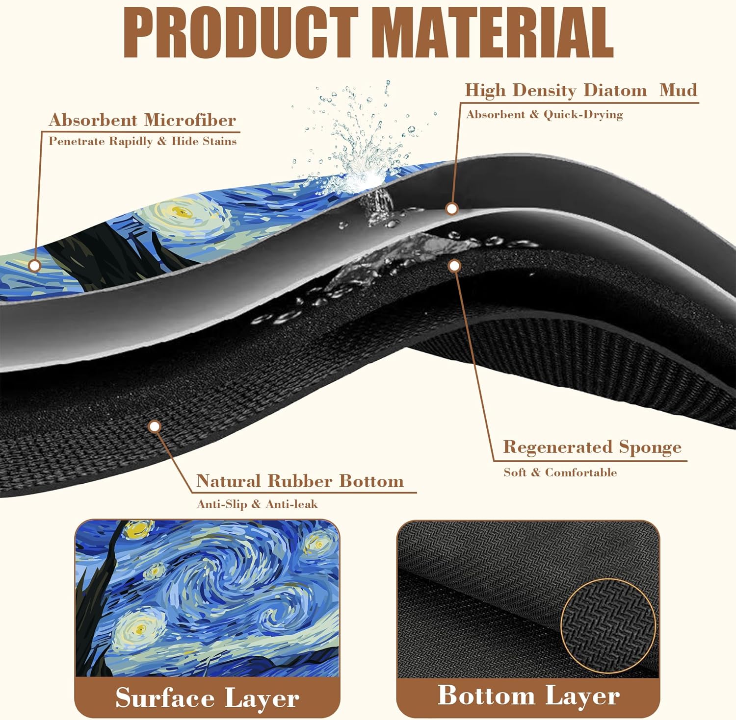 Dish Drying Mat Starry Night Art Coffee Bar Mat for Countertop Absorbent Rubber Backed Hide Stain Dish Drainer Rack Pad Espresso Machine Coffee Pot Dining Room Decoration 11.8 x 19.7 Inch
