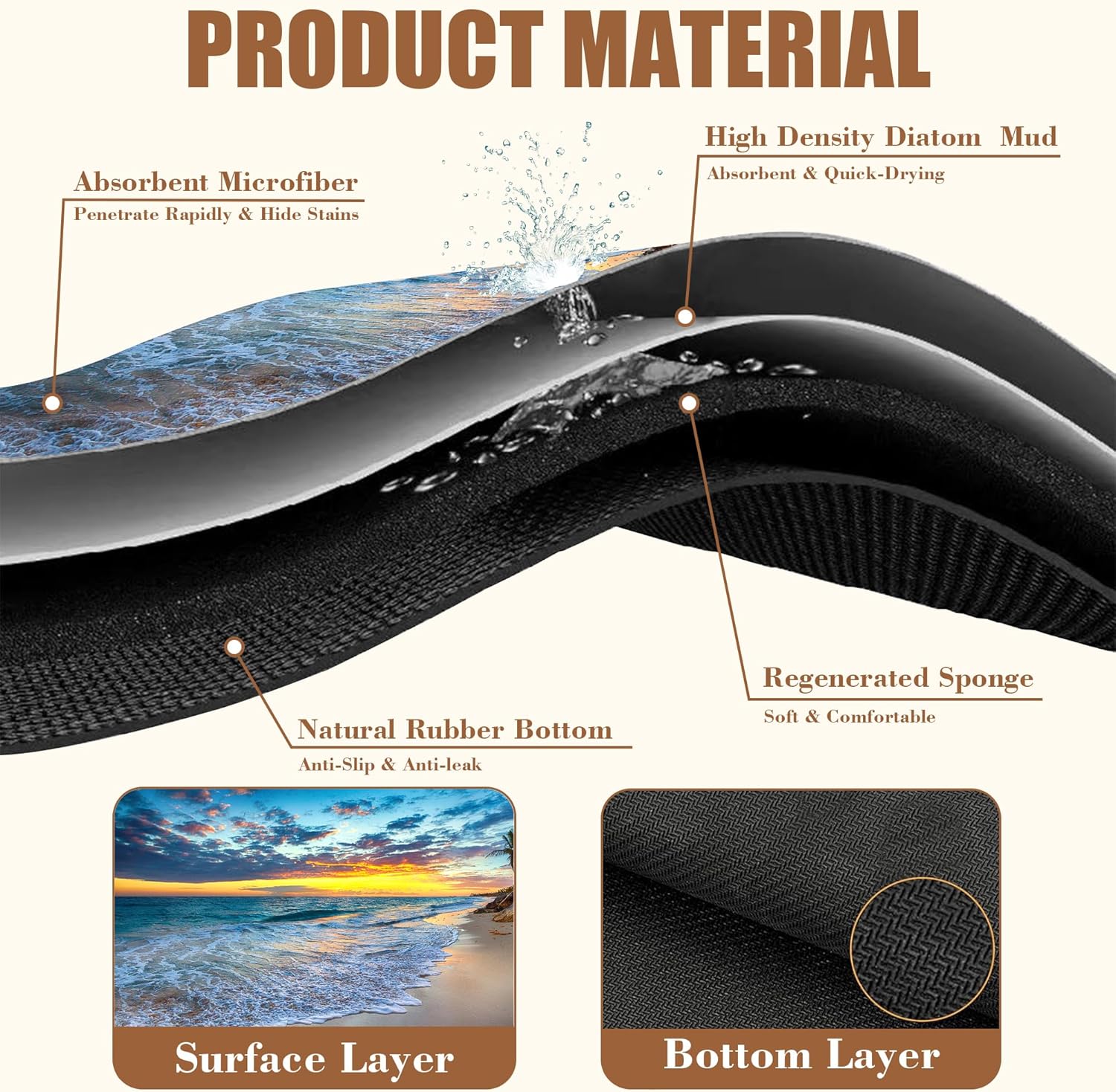 Sunrise over the Beach Coffee Mat Absorbent Dish Drying Mat for Kitchen Counter Hide Stain Rubber Backed Coffee Bar Accessories Fit Under Espresso Machine Cafe Table, 11.8 x 19.7 Inch