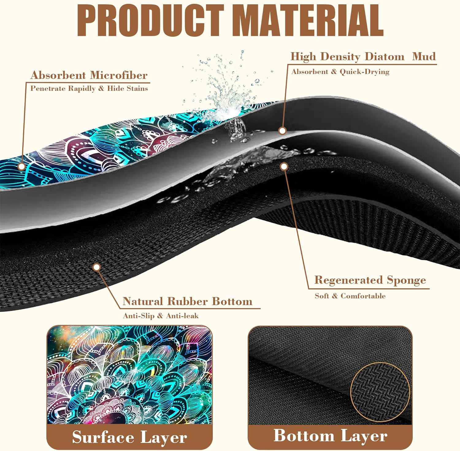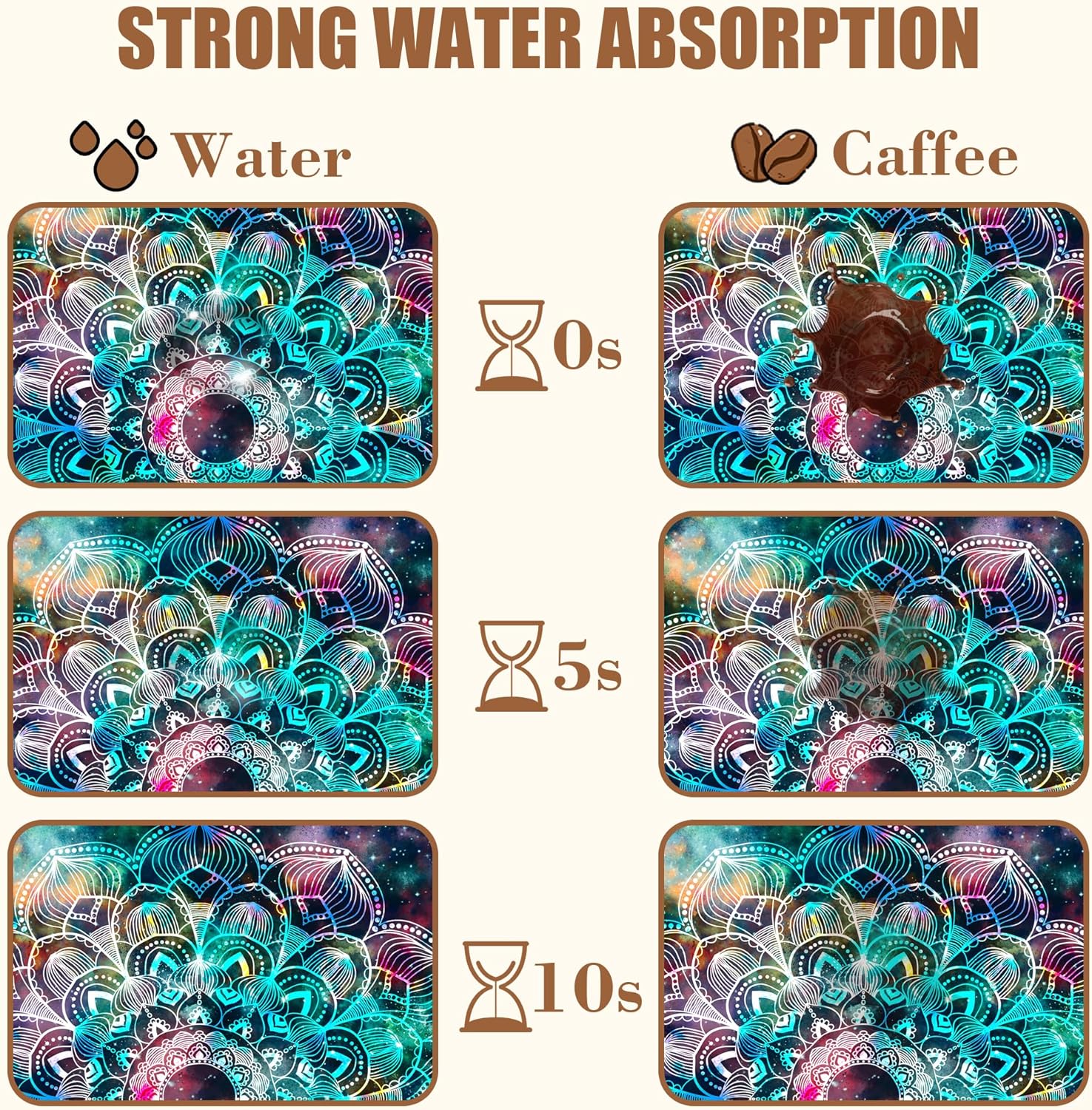 Abstract Mandala Galaxy Star Dish Drying Mat for Kitchen Counter Coffee Bar Mat Hide Stain Absorbent Rubber Backed Coffee Maker Espresso Machine Accessories 11.8 x 19.7 Inch