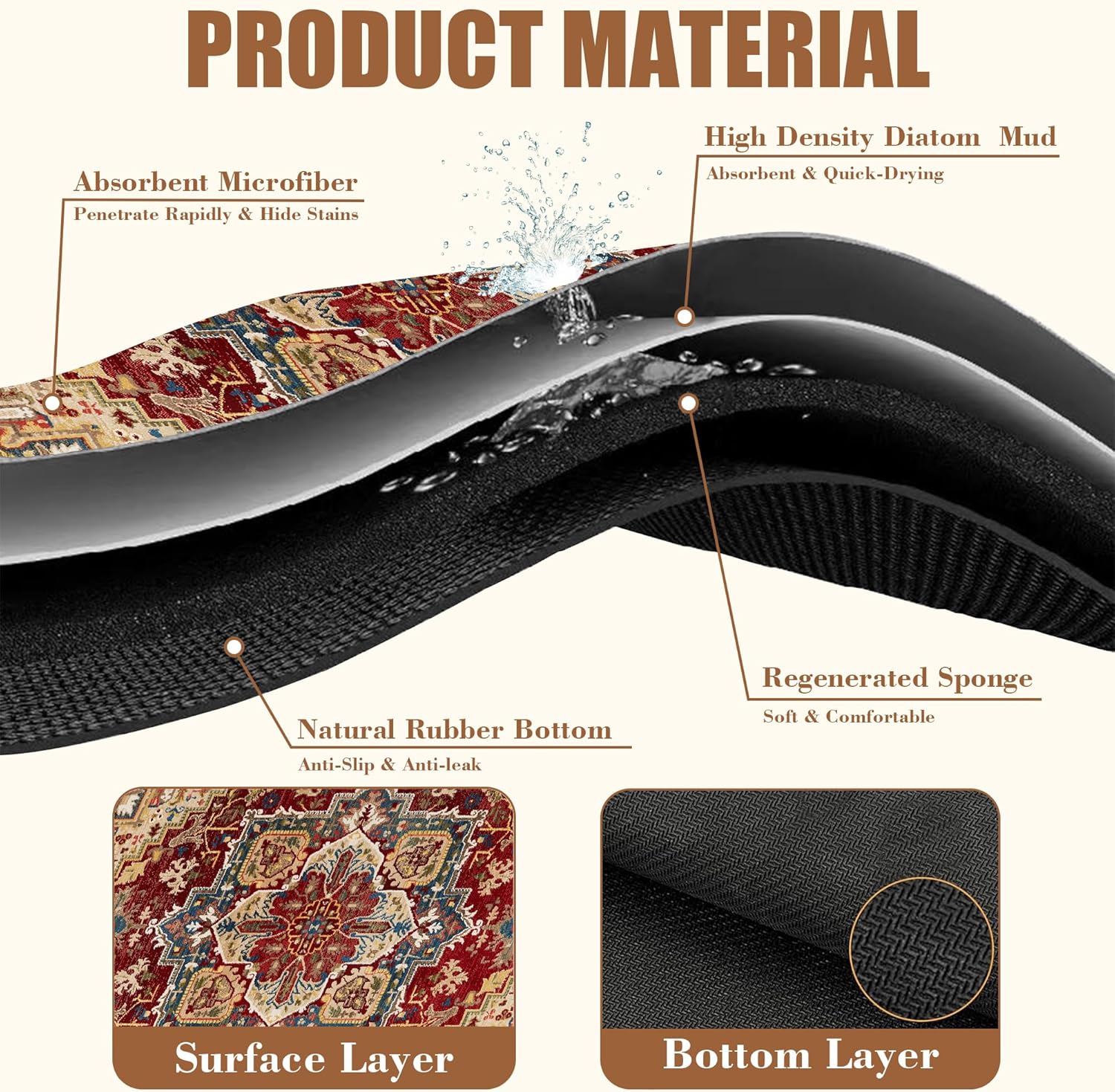 Boho Dish Drying Mat Persian Tribal Coffee Bar Mat for Countertop Absorbent Rubber Backed Hide Stain Dish Drainer Rack Pad Espresso Machine Coffee Pot Dining Room Decoration 15.7 x 23.6 Inch