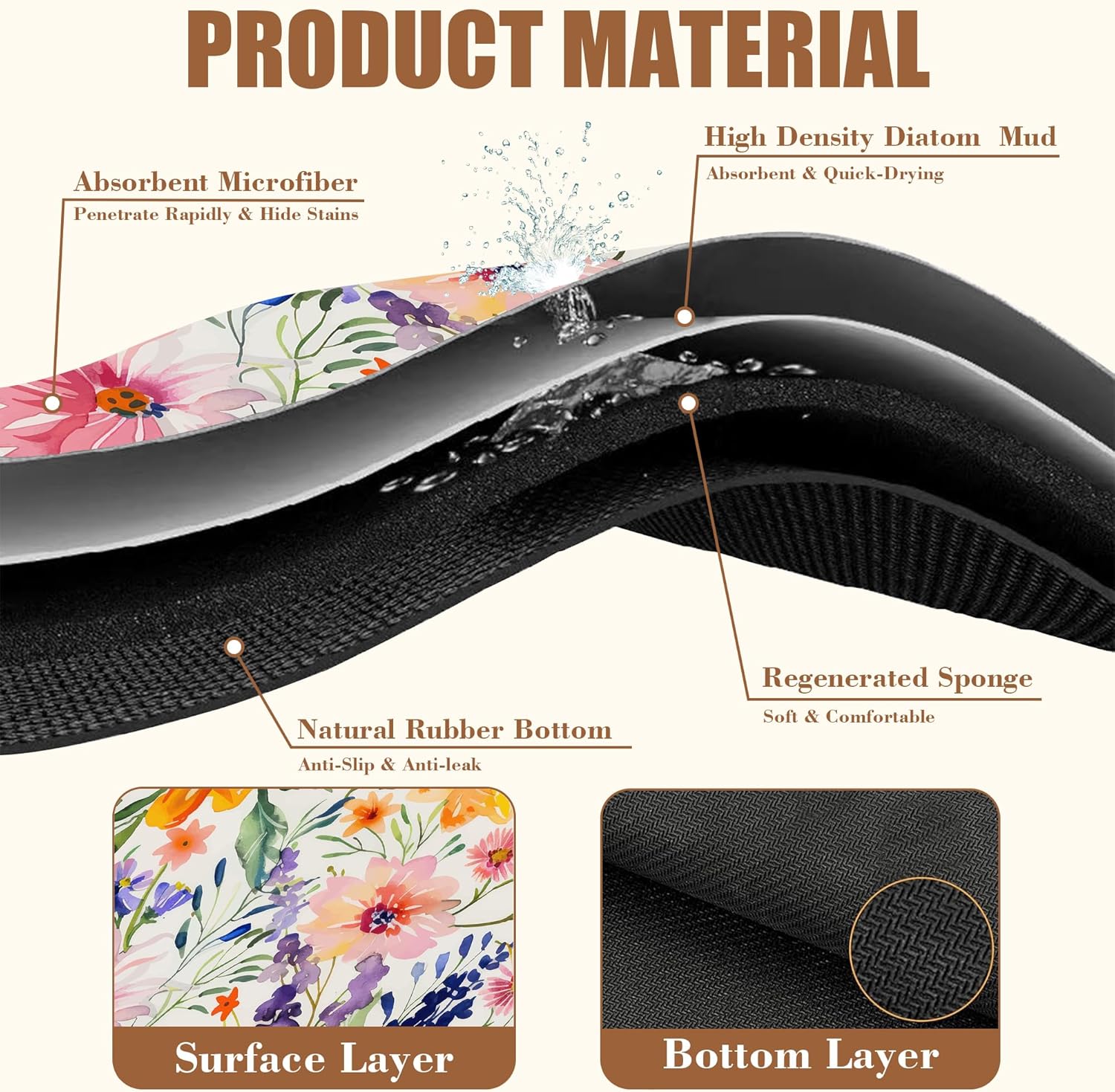Dish Drying Mat Colorful Wildflowers Coffee Bar Mat for Countertop Rubber Backed Absorbent Hide Stain Dish Drainer Rack Pad Espresso Machine Coffee Table Dining Room Decoration 15.7 x 23.6 Inch